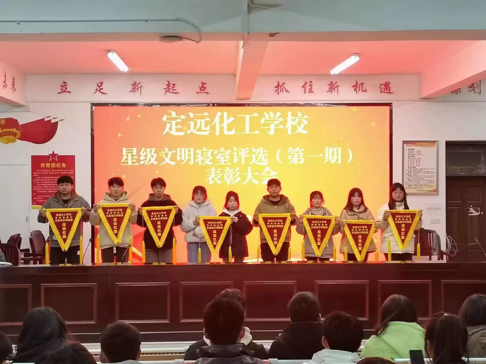 ~ 2月27日,定远化工学校在综合楼一楼会议室举行星级文明寝室评选表彰大会。校党委委员王家欢、团委书记李小为、年级主任、星级文明寝室班主任及寝室长参加会议,表彰大会由校工会主席陈邰主持。