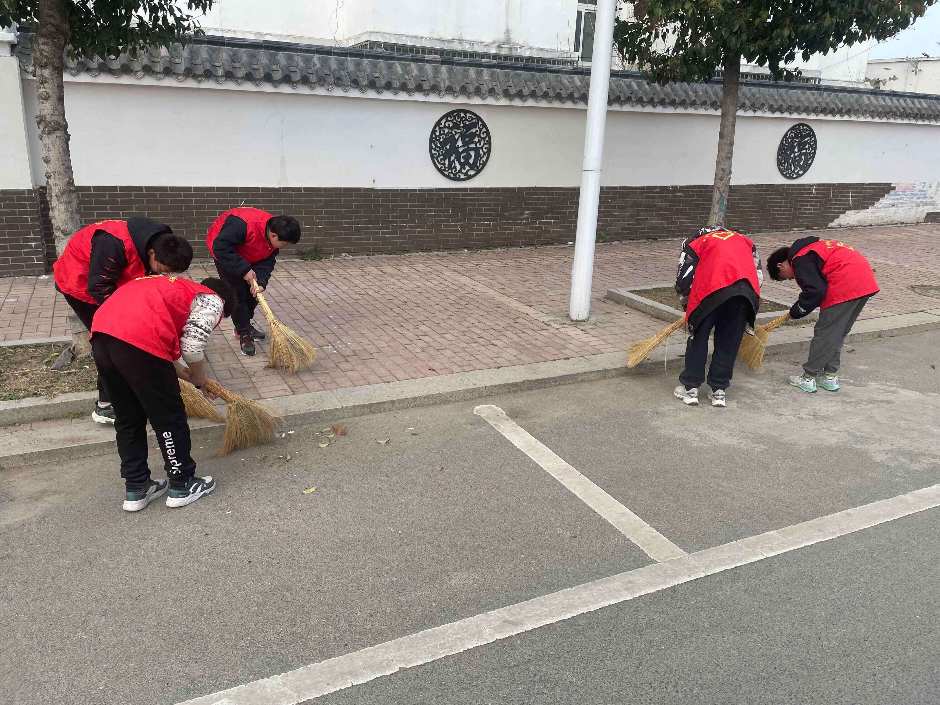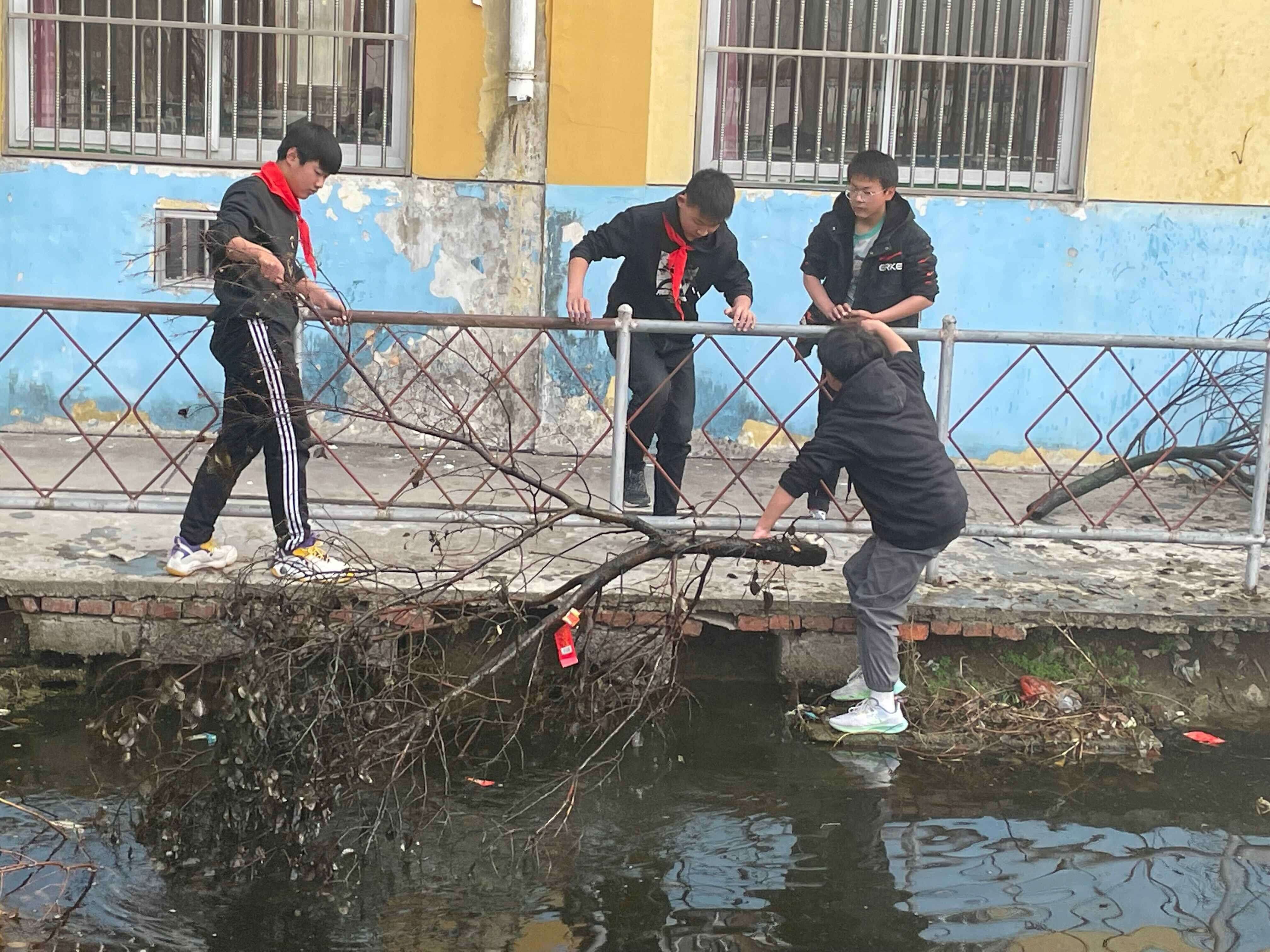 ~ 该校教师和少先队员们拿着劳动工具打扫卫生,他们捡起掉落在地上的枯树枝叶,打捞池塘里的杂物,用心地打扫着校门口的每一片角落,同学们积极参与,不怕脏不怕累的精神互相感染、志愿者们的服务热情高涨,受到了社会的一致好评。(图文:李建华 初审:赵朝喜 复审:许培铜)