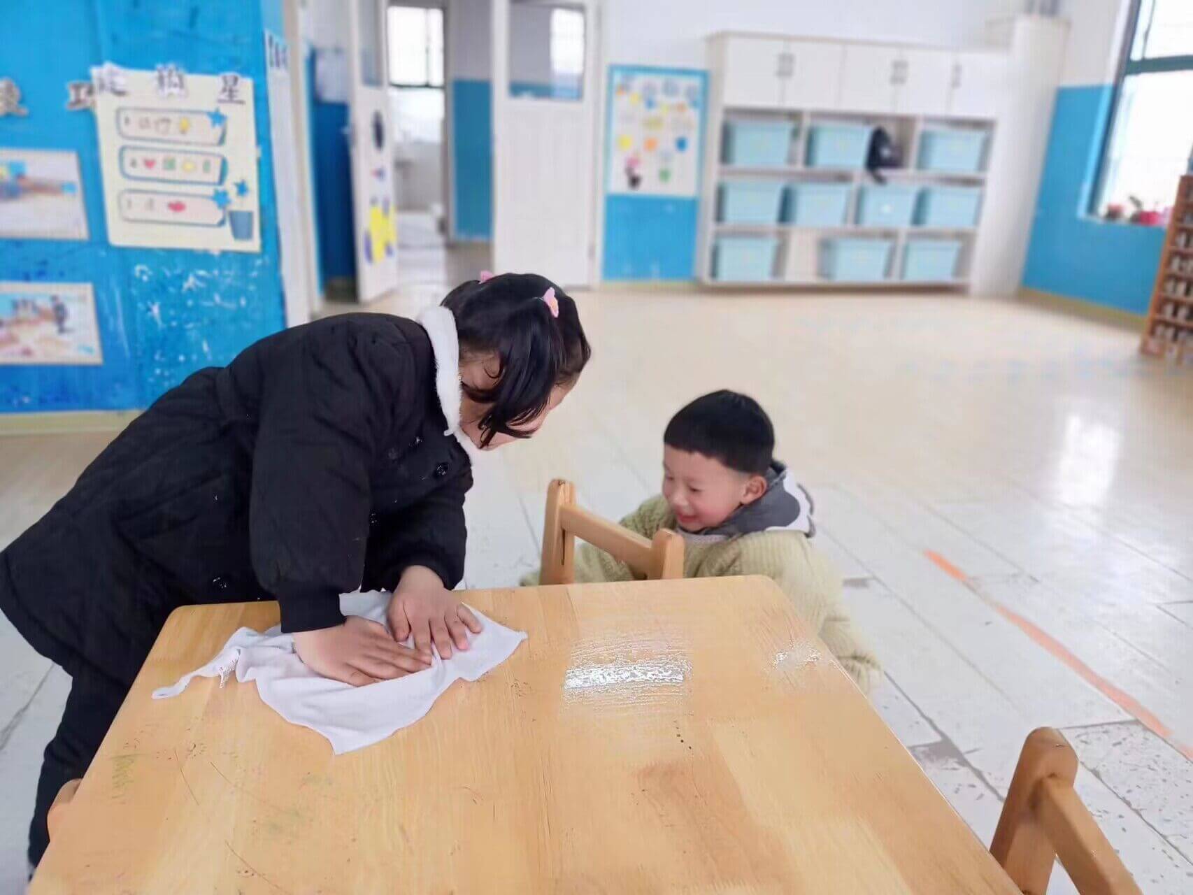 ~ 该园以“雷锋精神我传承”开展了实践活动,在幼儿园一日生活活动中,整理书本、床铺,还有的小朋友帮老师擦桌子、擦门等等,用实际行动践行雷锋精神。
