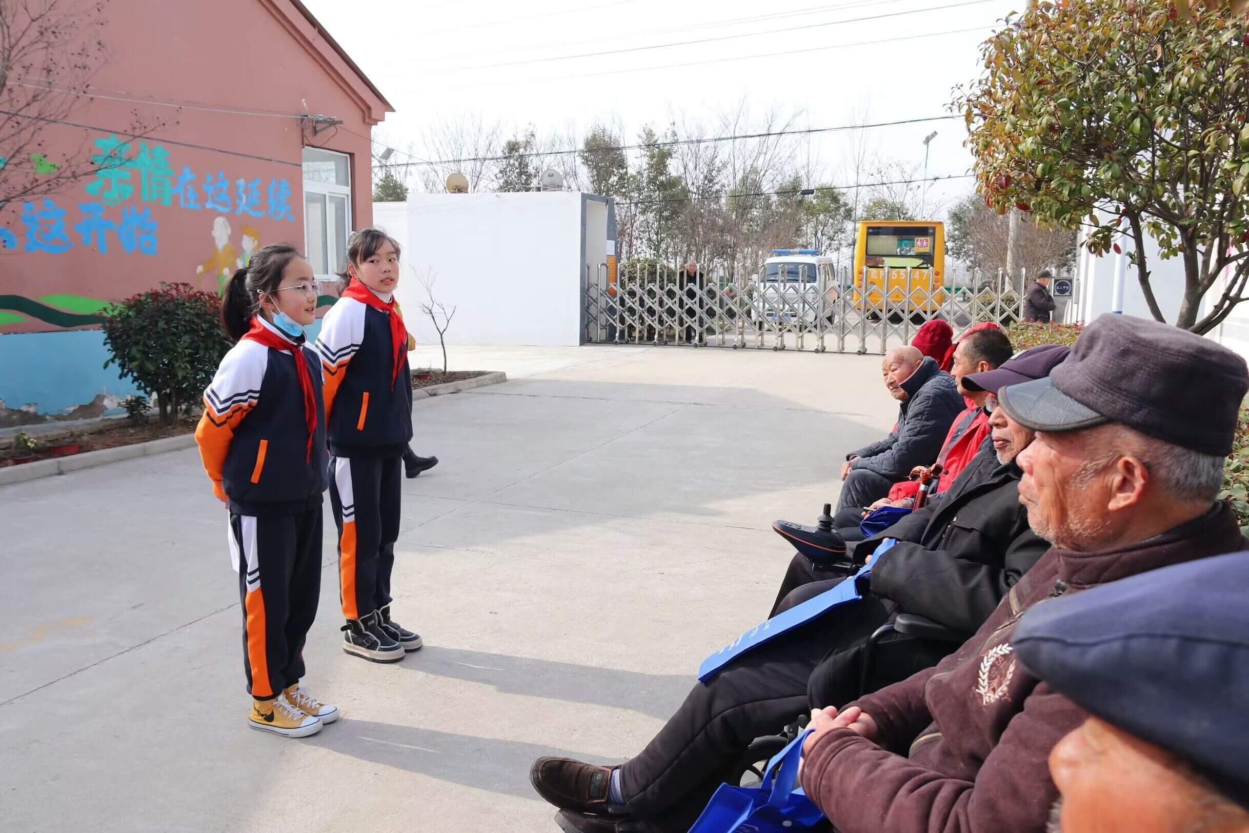 ~ 一进敬老院,队员们开始有序忙碌,清理垃圾、整理床被、收拾生活用品,擦抹门窗,陪伴老人交流谈心,另外,他们还耐心帮老人按摩、为他们表演诗朗诵、舞蹈等节目。平常安静的敬老院在队员们的欢声笑语中显得格外热闹。老人们喜笑颜开,掌声连连,整个敬老院充满了欢乐的气氛。