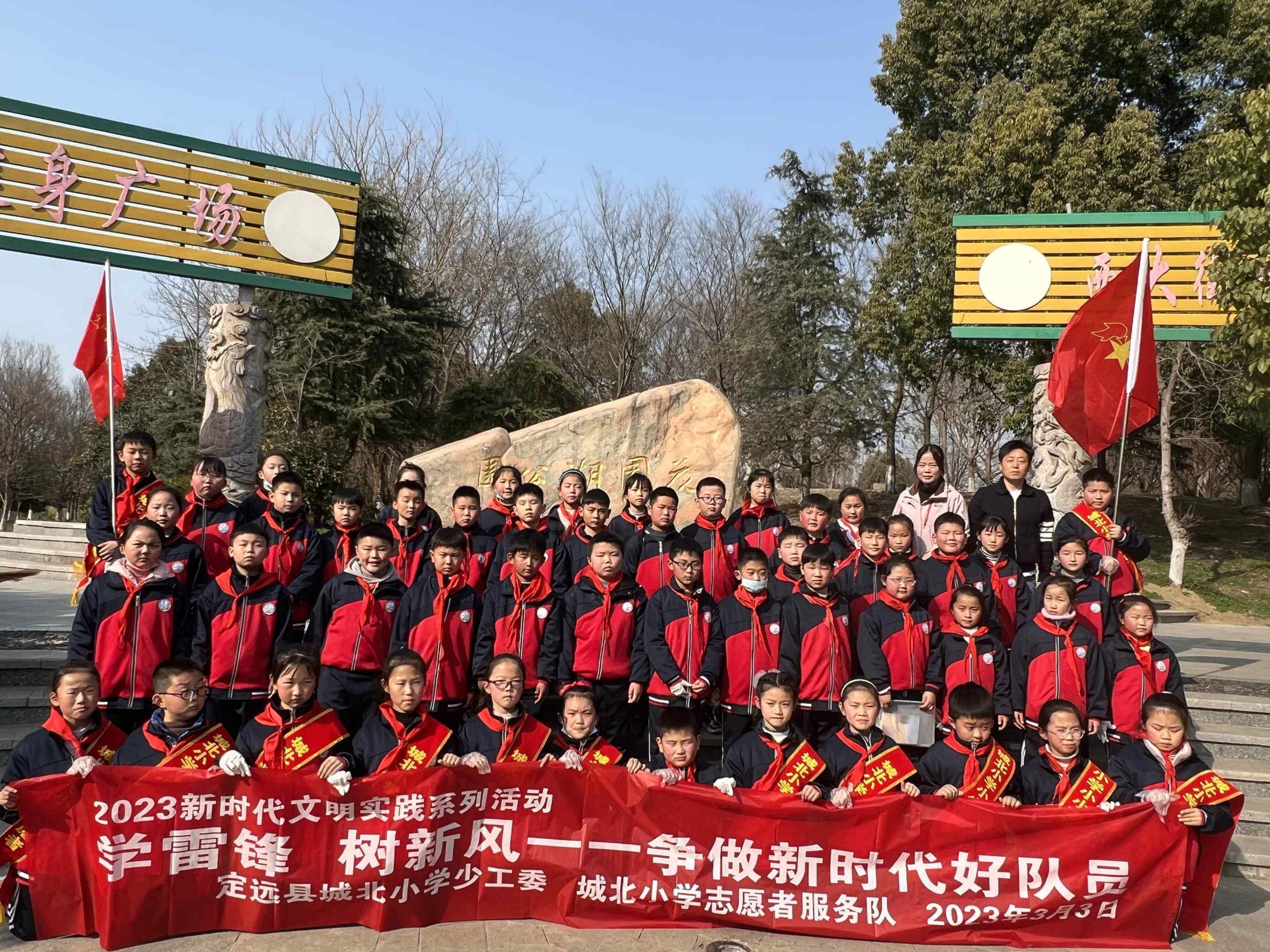 为了贯彻落实《中共中央、国务院关于改进和加强未成年人思想道德建设的若干意见》文件要求,弘扬雷锋精神,有效促进城北小学新时代文明实践活动和未成年人思想道德的全面发展,3月3日,定远县城北小学政教处、大队部组织部分中队到花园湖社区进行学雷锋校外实践活动。