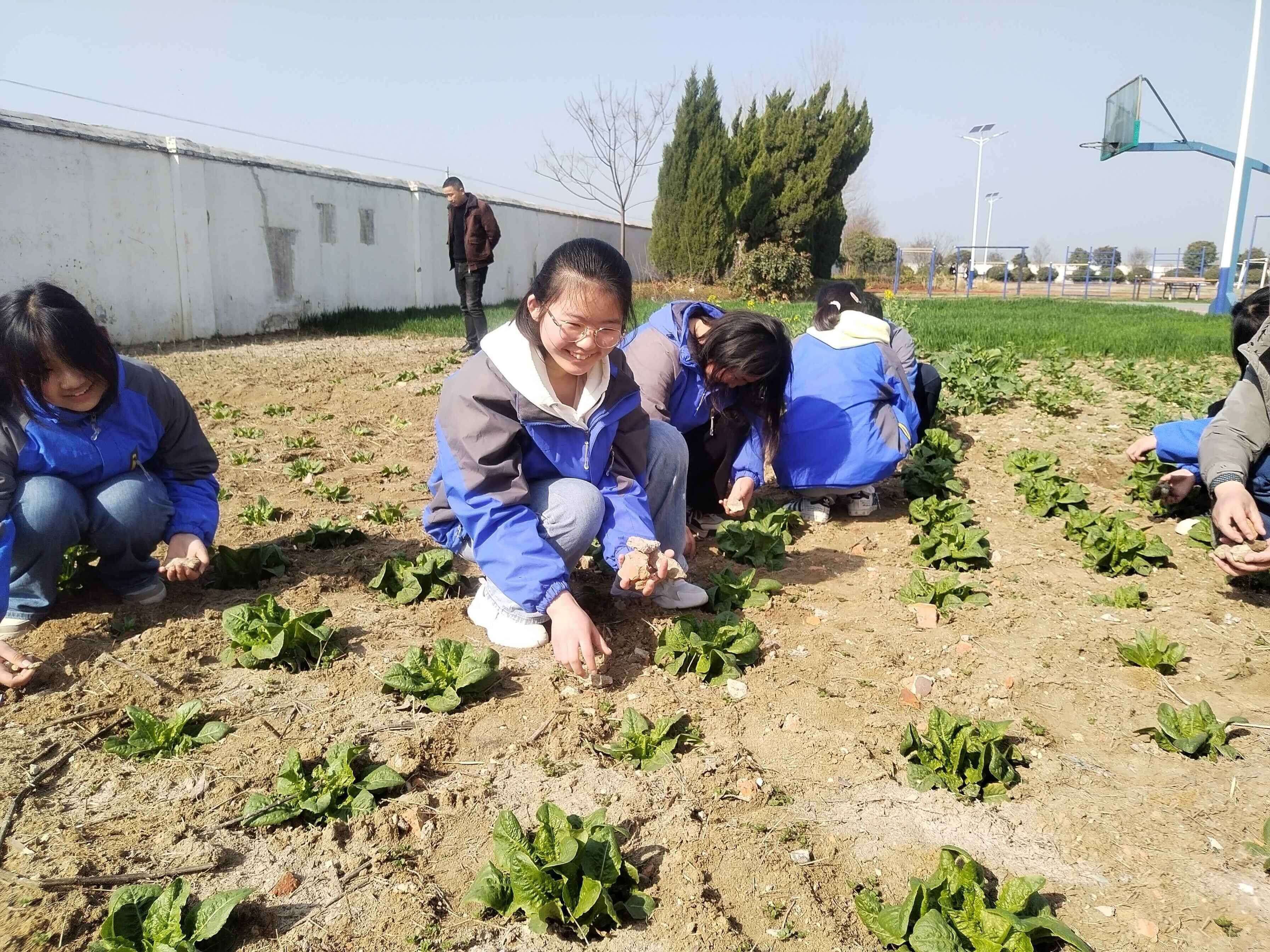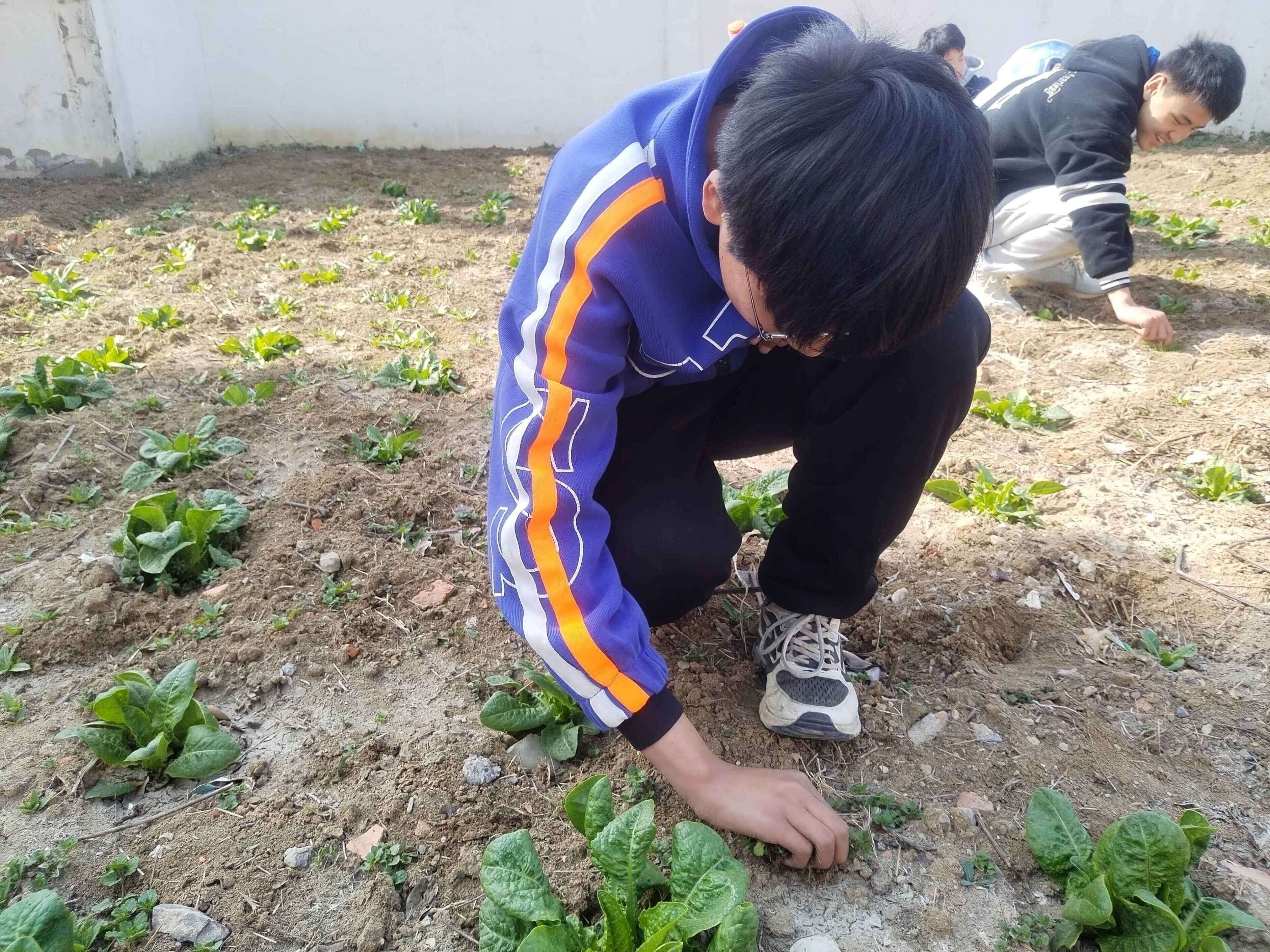 ~ 莴笋基地的守护者们更不甘落后,以敏捷的速度除草、松土,期盼自己种下的小苗快快长大,最好能长成“参天大树”。洋葱基地上,班主任李永学介绍洋葱的成长历程,仿佛在谈论一个刚出生的婴儿如何成长为一个巨人,学生心潮澎湃,不由自主地捡石头、拔杂草,做好坚定的守护者。