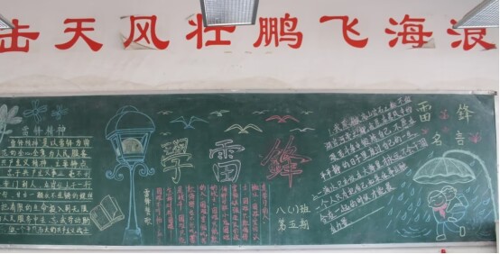 二、开展黑板报评比活动。各班充分利用黑板报宣传阵地,对雷锋的生平事迹进行全方位报道,展现雷锋的形象,赞扬雷锋的“钉子精神”,歌颂雷锋“全心全意为人民服务”的高尚品质,展示了同学们对雷锋精神的感悟和理解。3月3日,学校团委组织评委对各班的黑板报进行评比,并对优秀班级进行表彰。