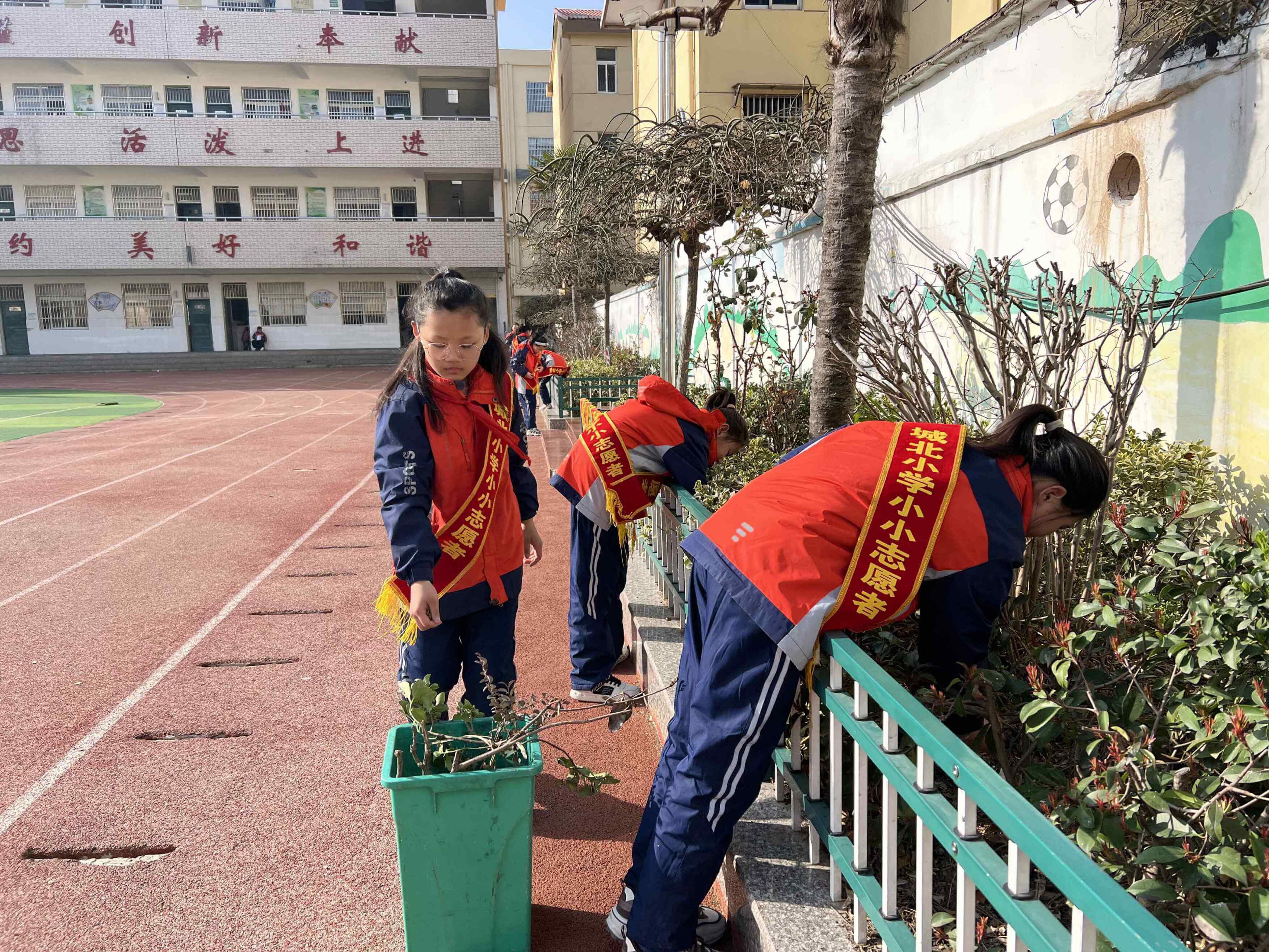~ 助学雷锋月活动的宣传,在辅导员老师的动员下,队员们利用晨会、课间时间,深入学校花坛、操场、车棚、廊道等角角落落,捡拾垃圾,冲洗污渍,充分发扬不怕苦,不怕累的精神。在集体的努力下,城北小学校园花坛变得更加整洁,走廊变得更加干净,校园环境更体现在细节之处。