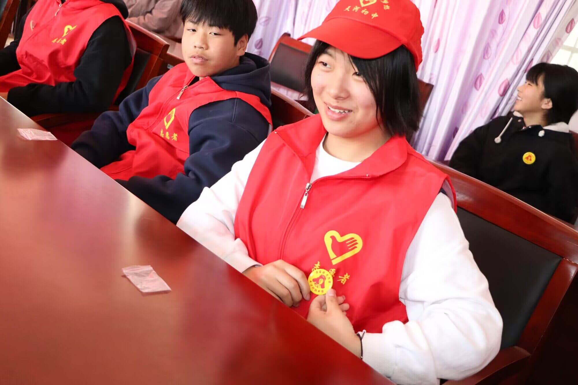 校团委给每位参与学雷锋志愿服务的同学佩戴一枚学雷锋志愿服务徽章。