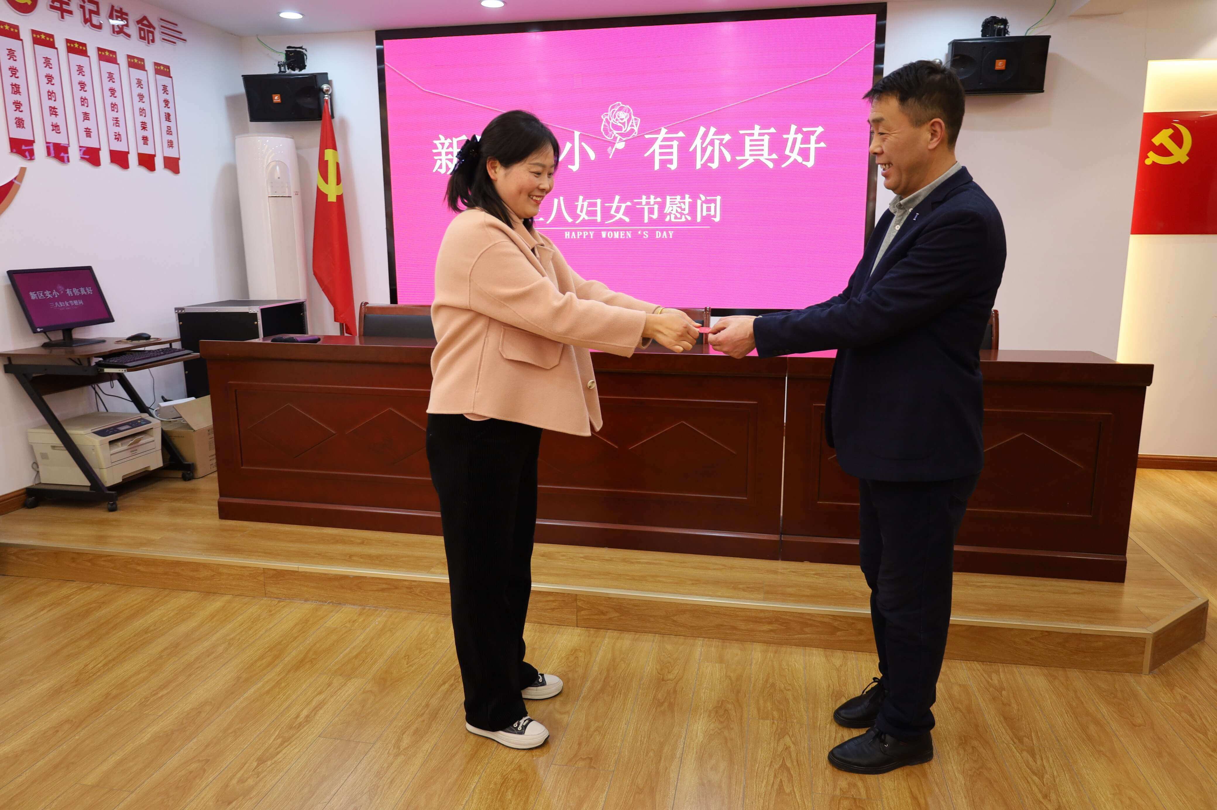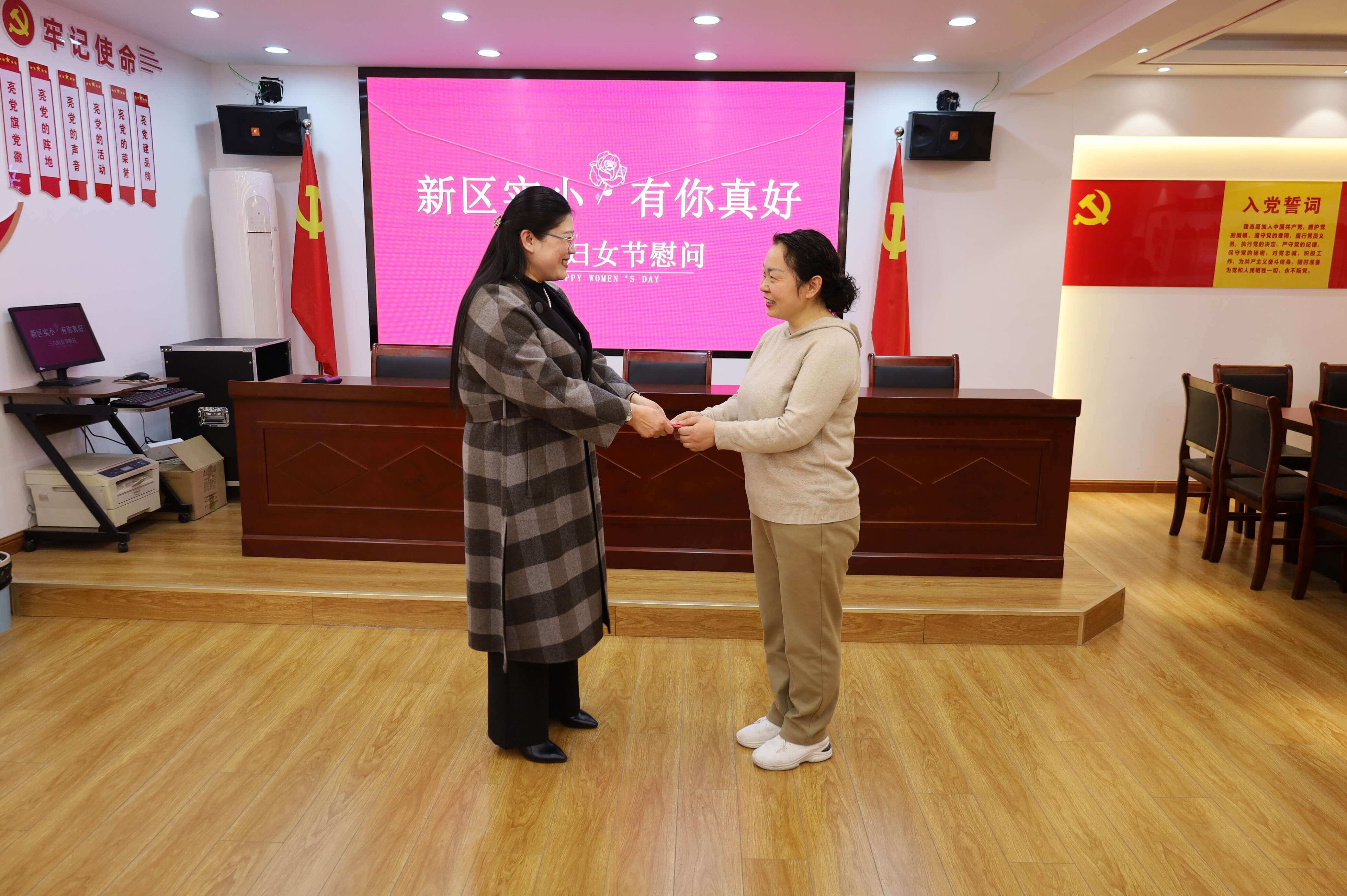 3月6日,在“三八”国际妇女节即将到来之际,定远县新区实验小学党支部和校工会看望慰问学校支教女教师郑亚琴和军嫂李粉。