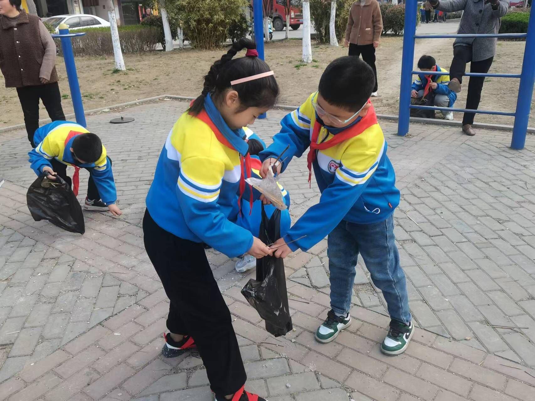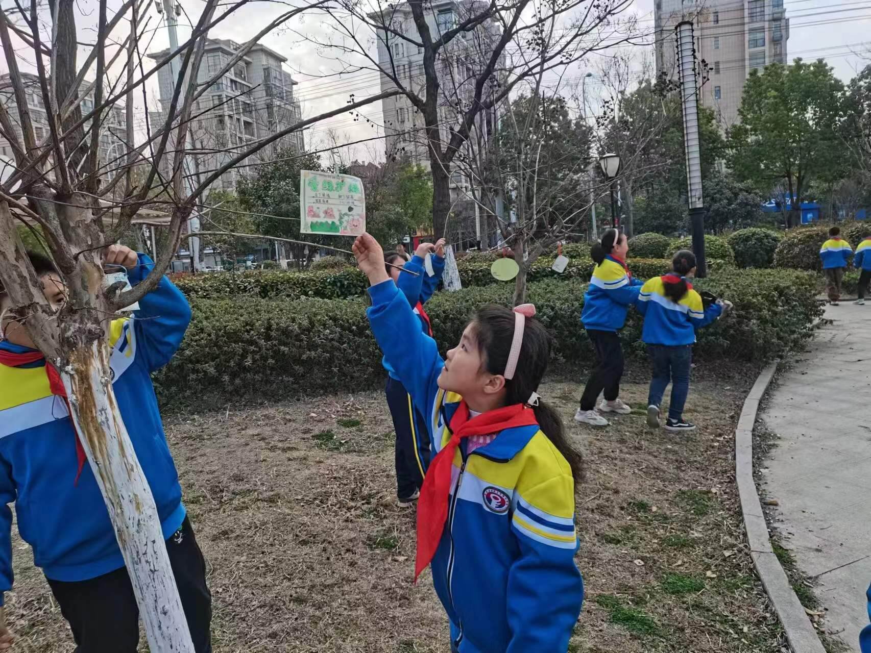 ~ 少先队员们在辅导老师的带领下,走进社区和文化公园开展清理垃圾和给小树挂牌活动。三月的定远春意盎然、阳光明媚,同学们在老师的带领下干得热火朝天。他们充分发扬不怕苦、不怕脏、不怕累的精神,有的用扫帚清扫人行道上的垃圾,有的用铁钳捡拾花坛里的枯枝败叶,还有的用自己做的爱绿护绿标语牌给小树挂牌,整个活动忙碌有序。