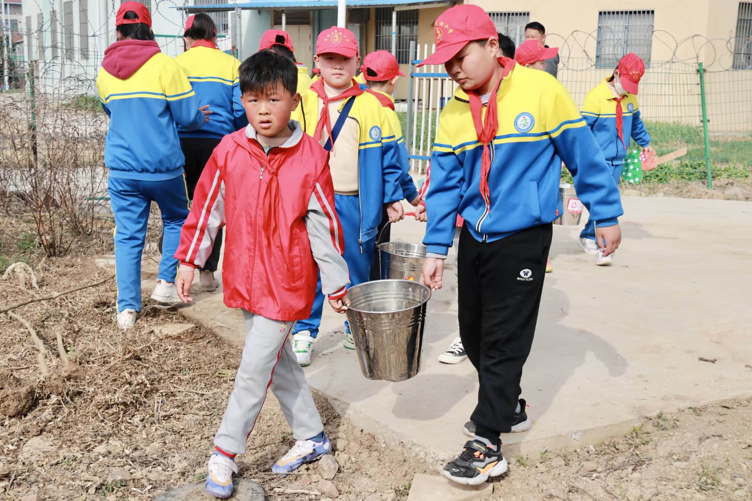 植树活动中,小小志愿者们干劲十足,分头行动,你挖坑,我扶苗,她填土,我浇水......个个忙的不亦乐乎,为裸露泥土增添了浓浓绿意。