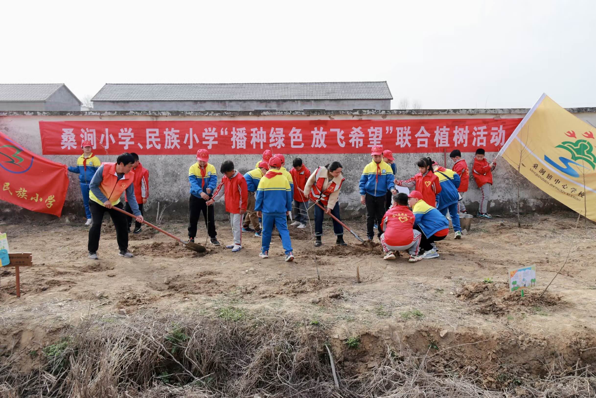 阳春三月,大地复苏,春意盎然。在全国第45个植树节到来之际,3月7日上午,定远县桑涧小学与民族小学在桑涧镇乡村学校少年宫劳动实践基地共同开展了“播种绿色,放飞希望”联合植树活动。