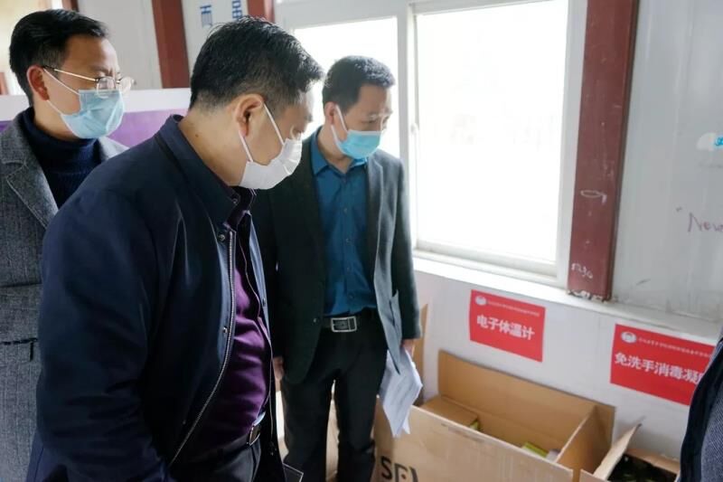 4月1日上午,定远县市场监督管理局副局长李世和、县教体局隋一喜股长深入育才学校督查开学前疫情防控工作。