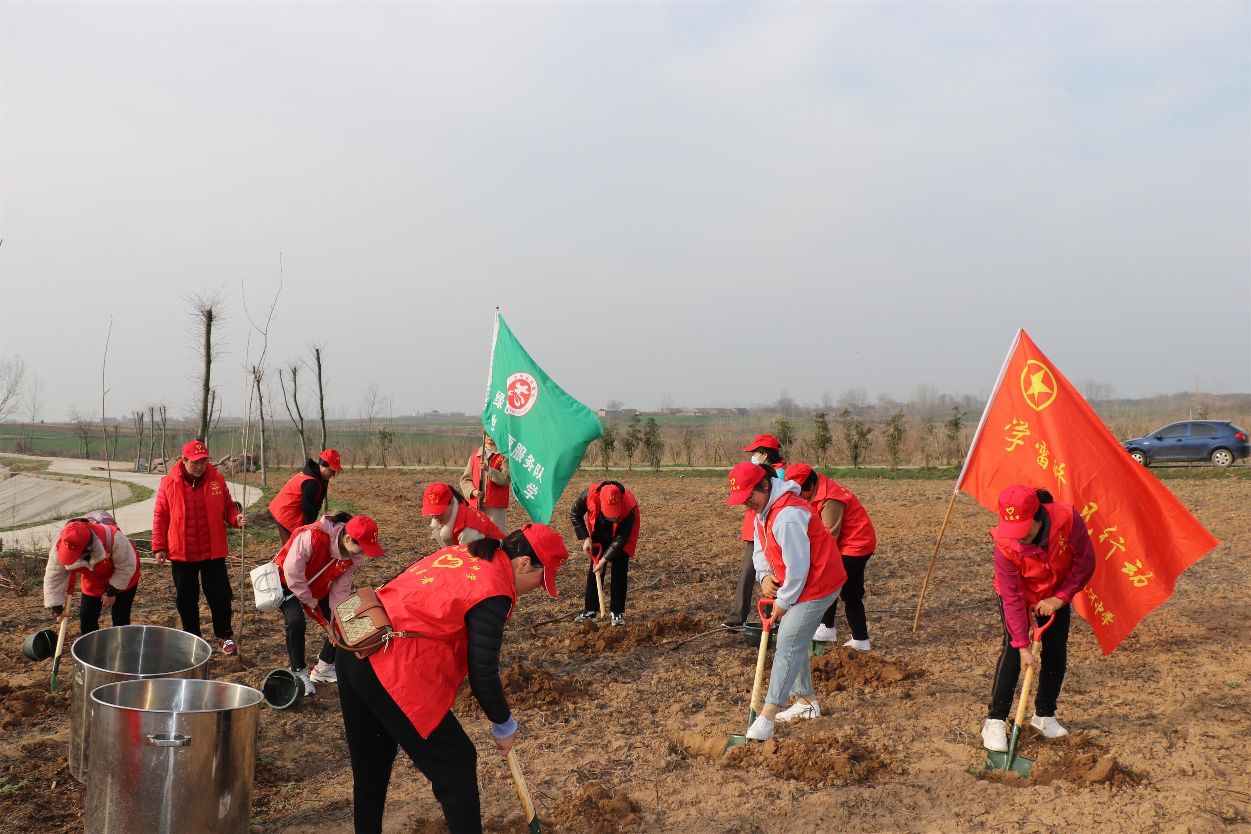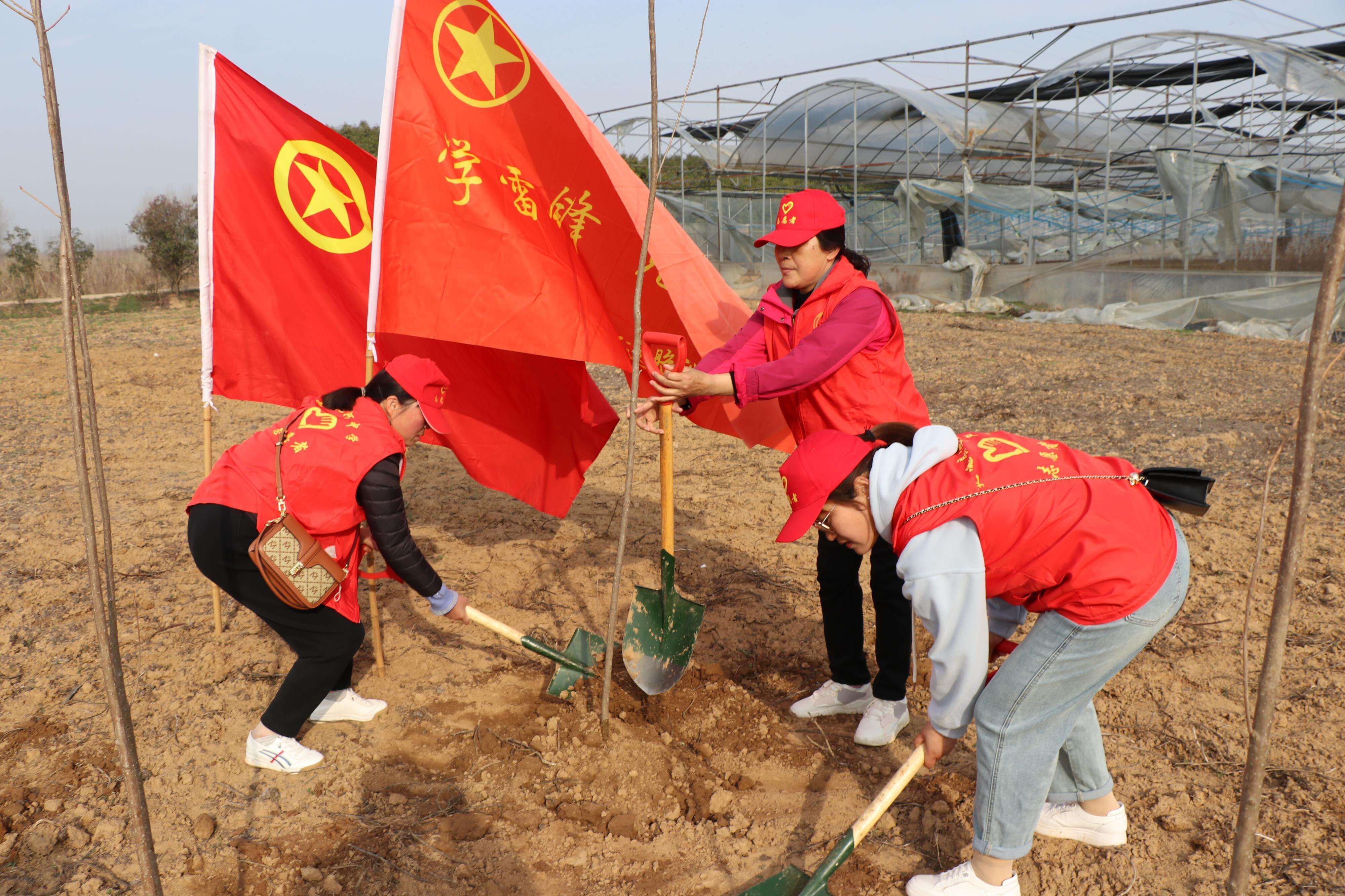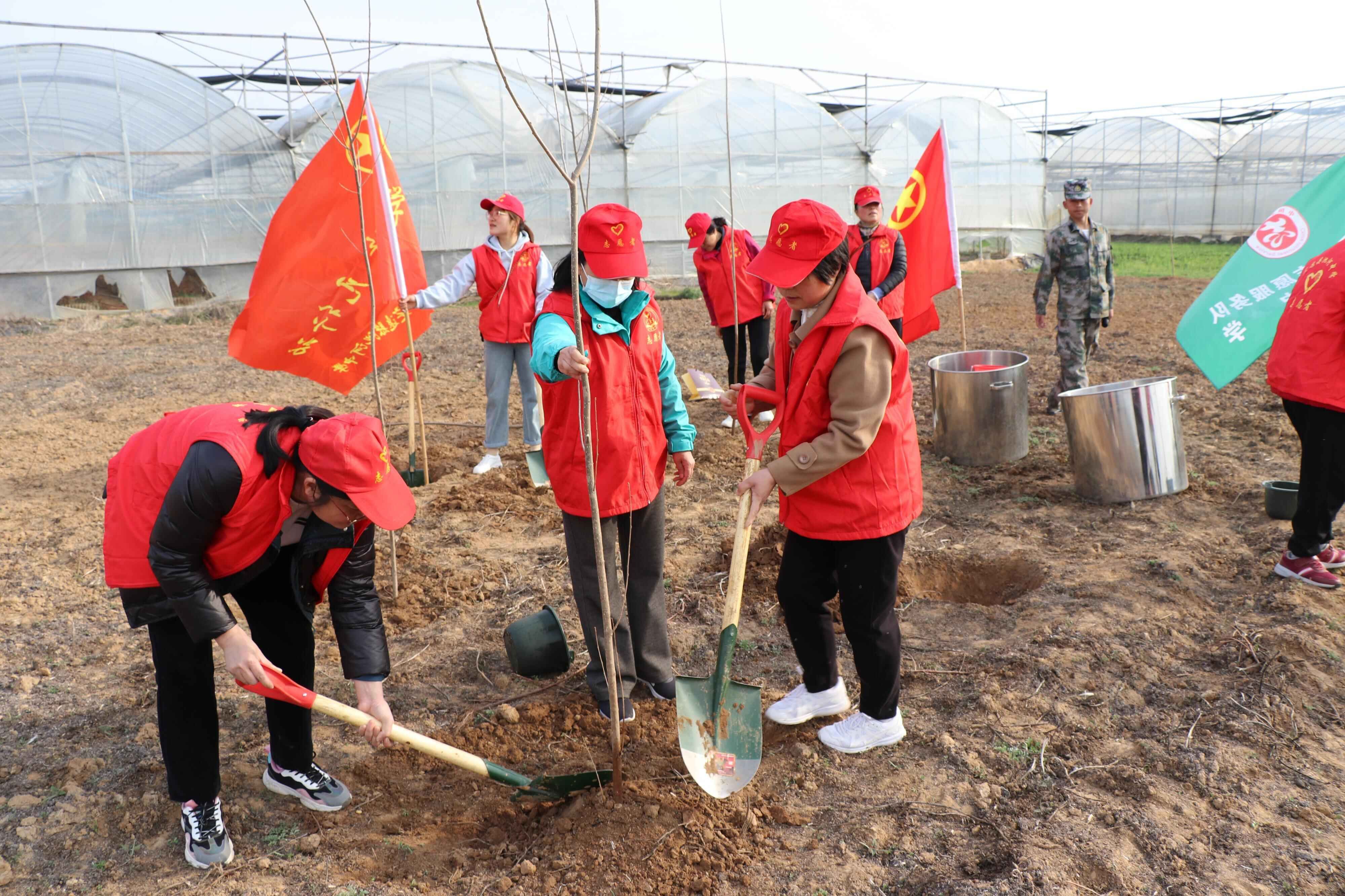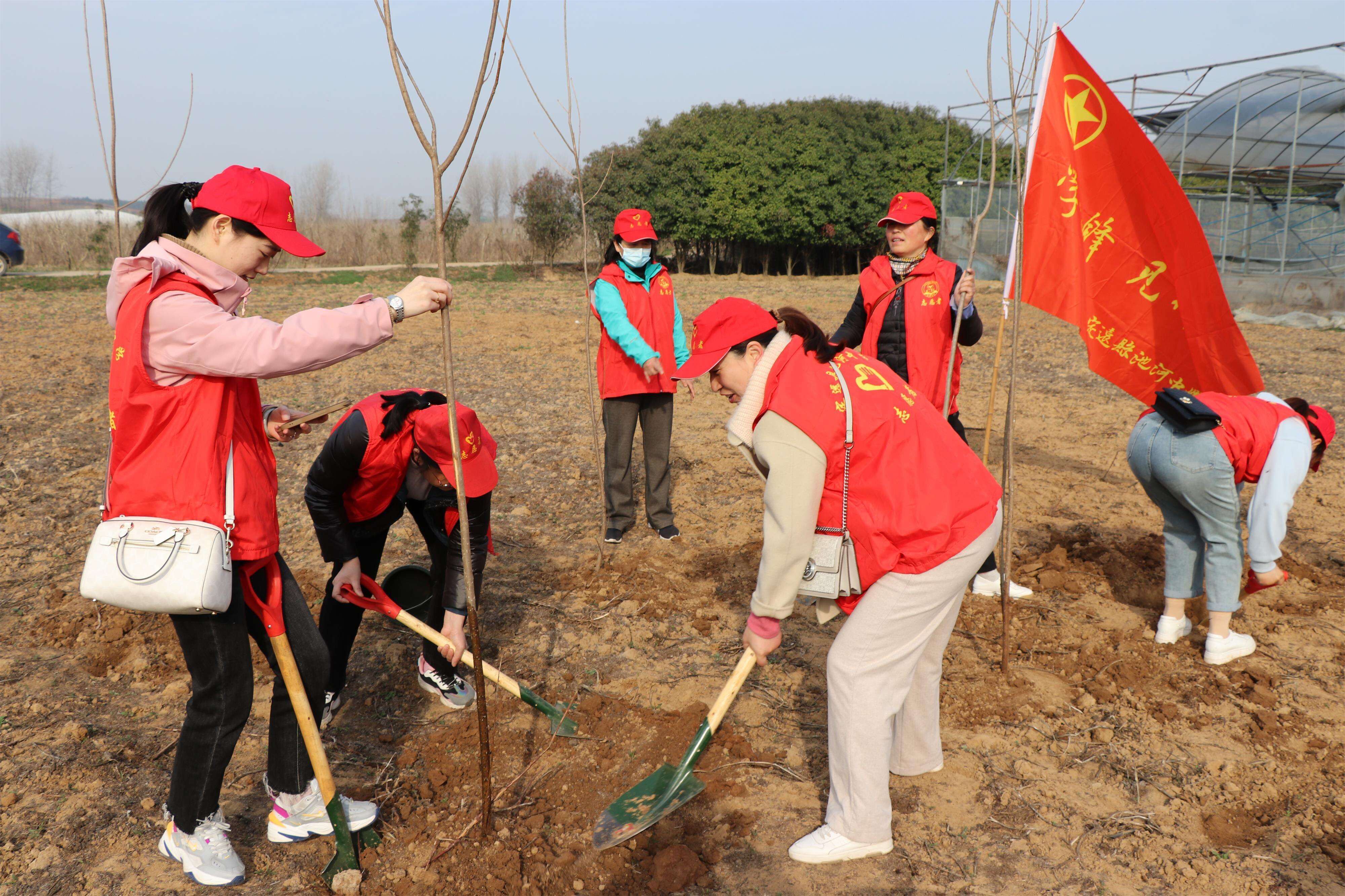 ~ 3月8日上午, 阳光正好,微风不燥。 在基地活动现场,团旗、学雷锋见行动、志愿者服务三旗迎风招展。身着红马甲的巾帼志愿者热情高涨地投入植树活动中,大家三五成组,分工协作,干劲十足,相互协作,配合默契,有人忙着挥锹铲土、有人忙着扶苗栽树,有人忙着培土浇水,尽展巾帼风采,确保栽一棵,活一棵。活动中,大家的衣服被汗水浸湿,鞋子和衣服被初春的泥土弄脏了,没有一人叫苦叫累。经过巾帼志愿者们的辛勤劳动,一棵棵新栽种的树苗亭亭玉立,整整齐齐,在和煦的春风中展现勃勃生机,为初春的池河大地增添丝丝活力。