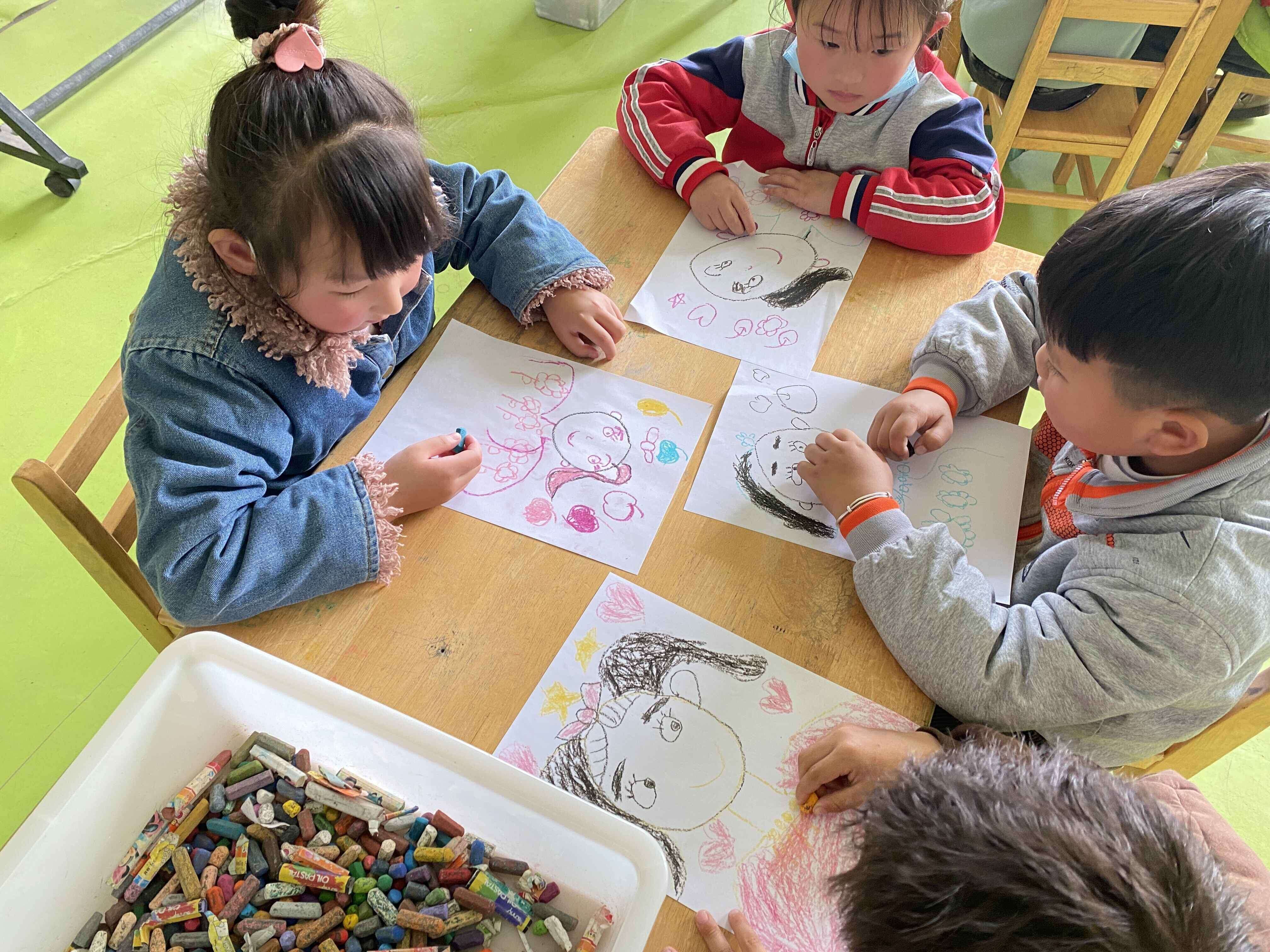 小班段的孩子用他们可爱的小手,用粘土为妈妈们做小花,中班的孩子,发挥他们丰富的想象力和熟练的绘画能力,以真挚感恩的心画出了他们心中最美的妈妈。而大班的孩子呢,则用他们灵巧的双手剪出了一张张爱心卡,并载满他们小小的爱,真挚的心送给了妈妈。