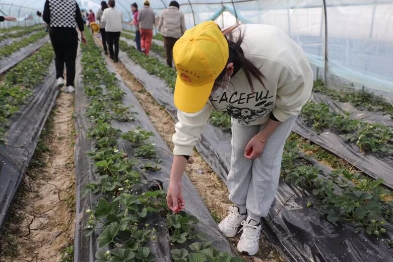 ~ 在振臂高呼的欢乐声中,活动正式拉开序幕。“开场舞”、“蒙眼互打”、“滚铁环”……大家团结协作,褪去疲惫,享受着节日的悠闲和欢乐。踏入草莓大棚,阵阵芳香扑面而来。老师们小心翼翼地走在田垄上,互相交流着如何辨别成熟的草莓和采摘的经验。