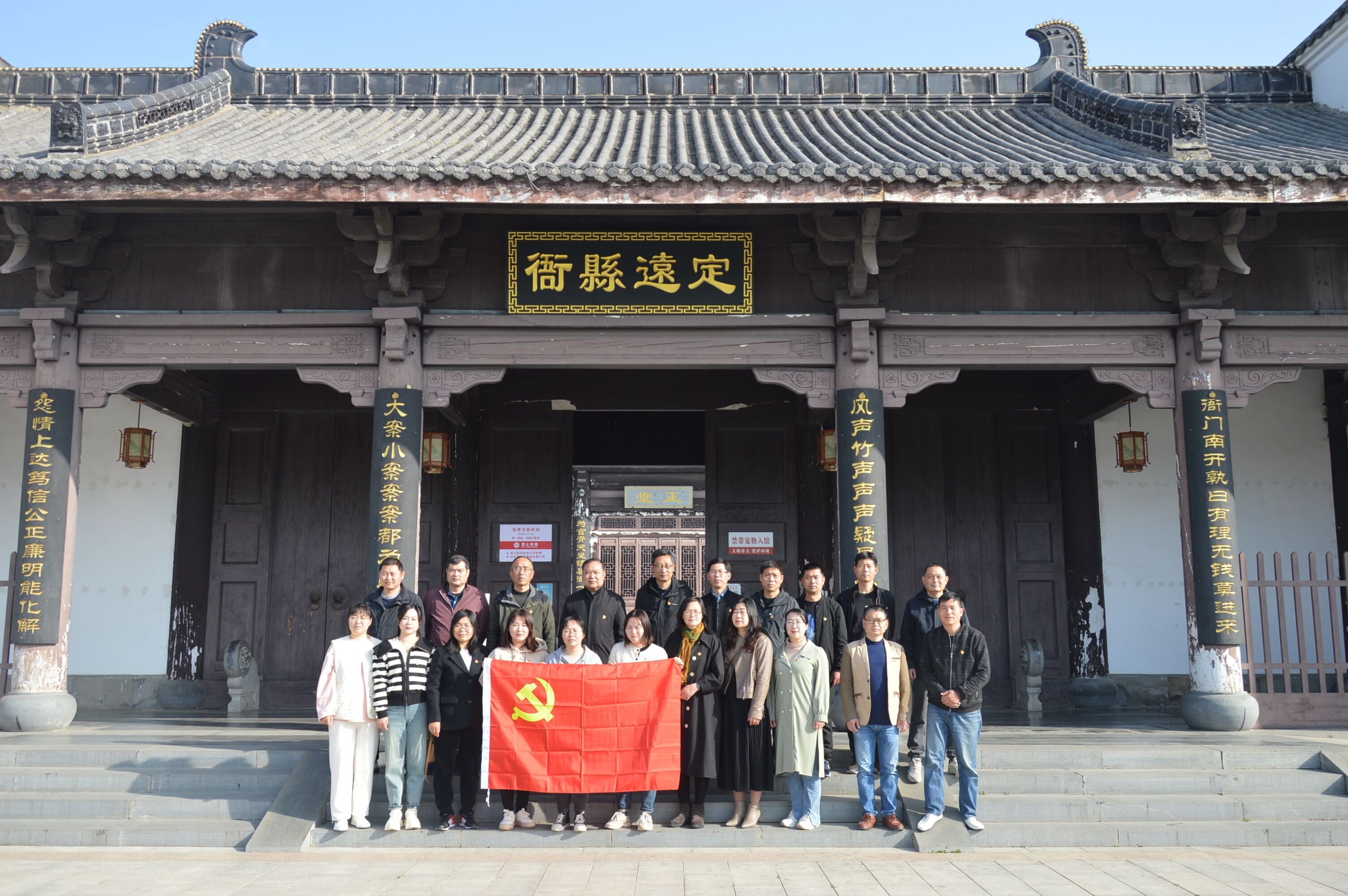 ~ 首先,学校党支部书记、校长杨孝前作学习贯彻二十大精神和活动教育动员讲话。接着,大家来到定远县包青天廉政文化园参观学习。党员们在讲解员的引导下,参观了包公县衙,聆听了古往今来广为传颂的包公断案故事,感受了包拯执政为民,清正自律、勤俭朴素的品格,学习了廉政文化。