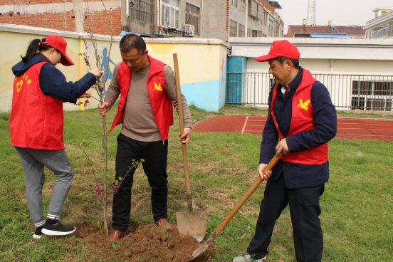 ~ 阳春三月,草长莺飞。3月10日,定远县岱山学校党支部组织党员教师开展义务植树活动,为该校补栽新绿,为扮靓校园贡献一份力。
