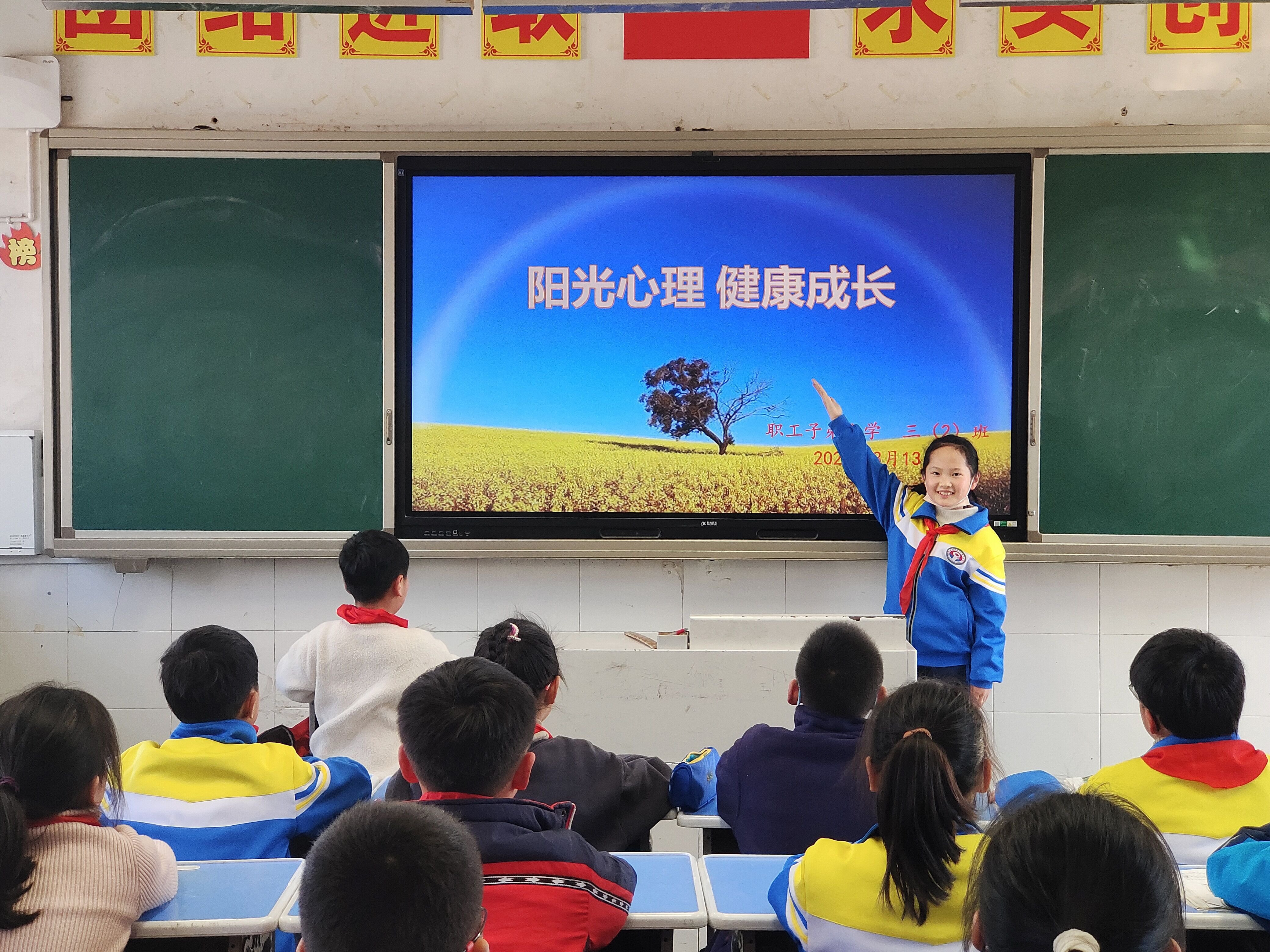 ~ 为全面普及学生的心理健康知识,提高同学们自觉维护自身心理健康的意识,建立自信心,增强心理素质,让心理健康教育走进班级,3月13日下午,定远县职工子弟小学政教处组织各班级开展了“阳光心理 健康成长”心理健康教育主题班队会活动。