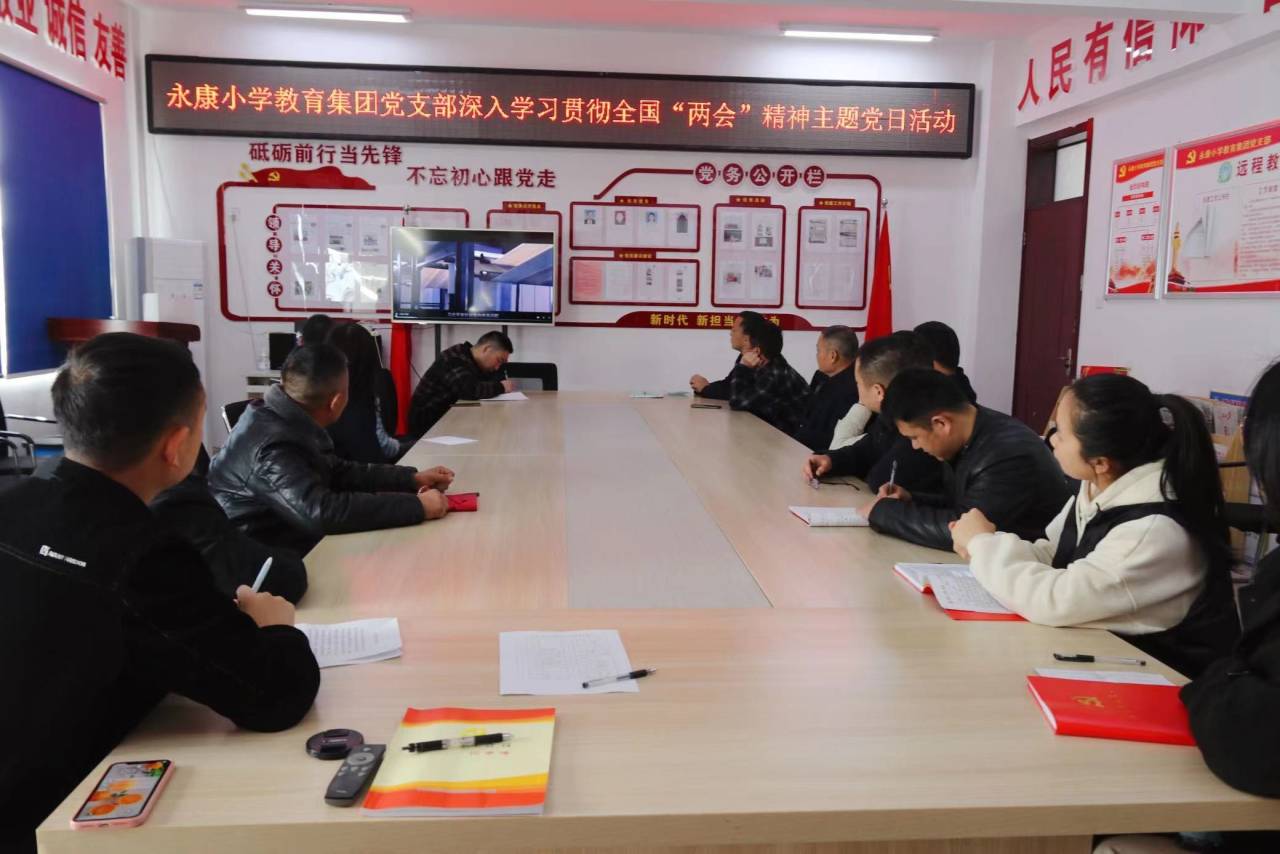 ~ 为深入学习十四届全国人大一次会议和全国政协十四届一次会议精神,加强党员的党性修养,3月14日,定远县永康小学教育集团党支部开展学习贯彻全国“两会”精神主题党日活动。支部全体党员参与本次学习活动,党支部书记、校长黄海山主持。