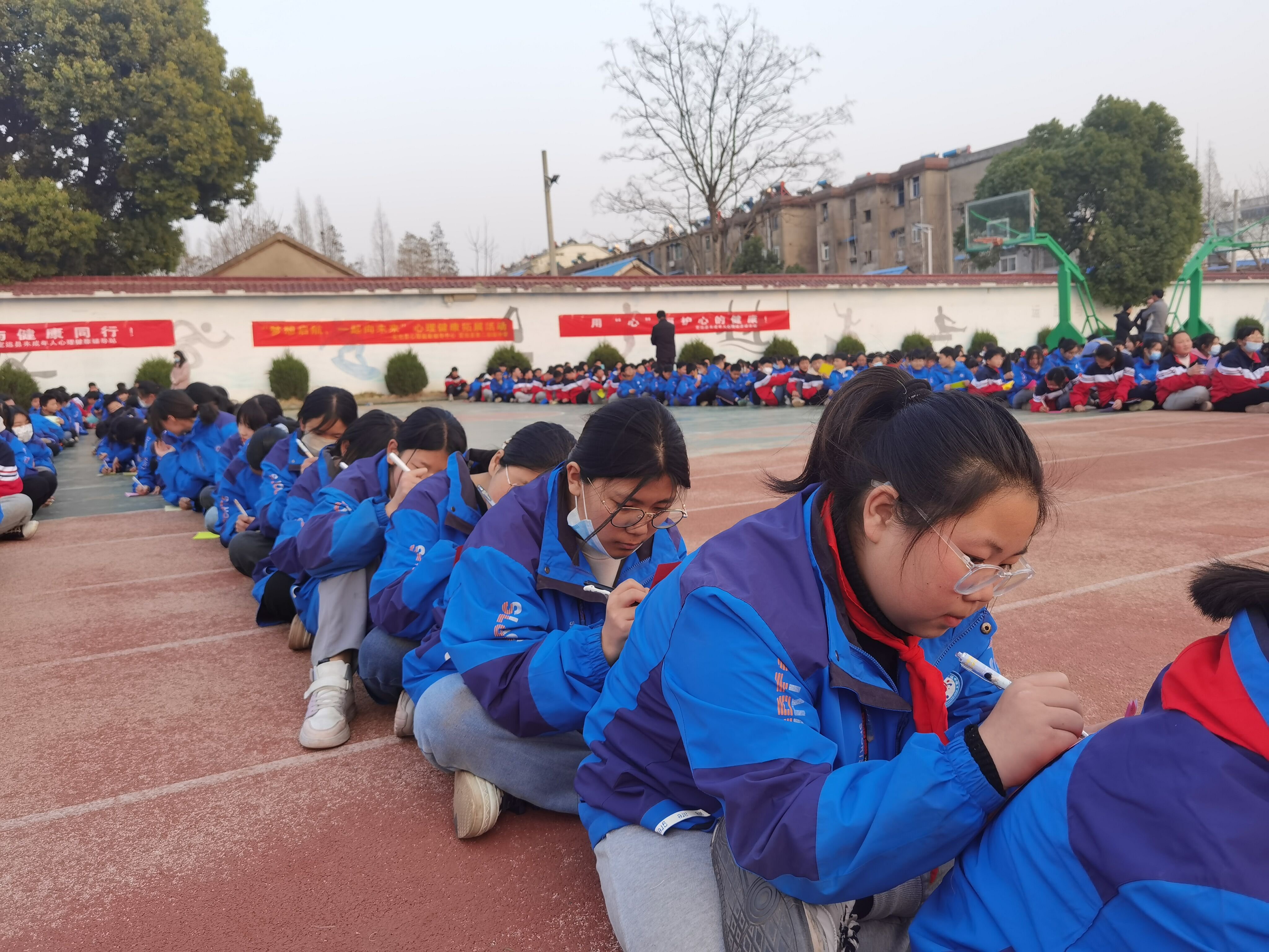 ~ 2023年3月15日,定远县第二初级中学开展的以“聆听心灵之声,灿烂从心开始”为主题的大型心理健康教育团体拓展活动在校运动场成功举行,六百余名学生参与其中,活动过程精彩纷呈,气氛热烈,充满乐趣。