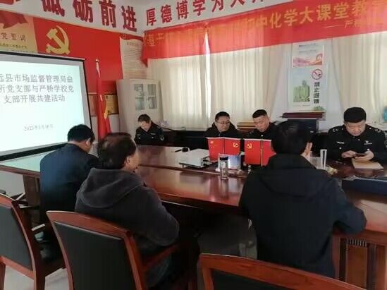 为创造性地开展创先争优活动,经甲乙双方商议决定,开展党组织“创先争优”共建活动,实现甲乙双向互动,资源共享、优势互补。3月16日上午,定远县市场监督管理局曲阳所党支部与严桥学校党支部结对共建活动。定远县市场监督管理局曲阳所所长胡传周、书记姬晓三等同志以及严桥党学校支部书记李树先等参加此次活动。