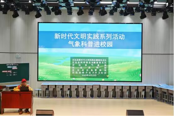 ~ 活动通过科普展板展示、现场讲解互动、发放科普系列丛书及专题讲座的形式,向同学们讲解气象日的含义以及相关科学知识。“天气气候水 代代向未来”主题科普讲座在东兴路小学报告厅举行。气象局的工作人员简要介绍了定远县的气候概况以及几种常见气象灾害以及防御措施。