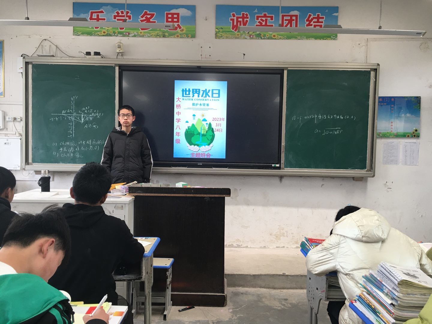~ 2023年3月22日是第三十一届“世界水日”,3月22—28日是第三十六届“中国水周”。今年“中国水周”活动主题为“强化依法治水 携手共护母亲河”。为了更好地宣传节水,爱护环境,定远县大桥初中开展了系列活动。
