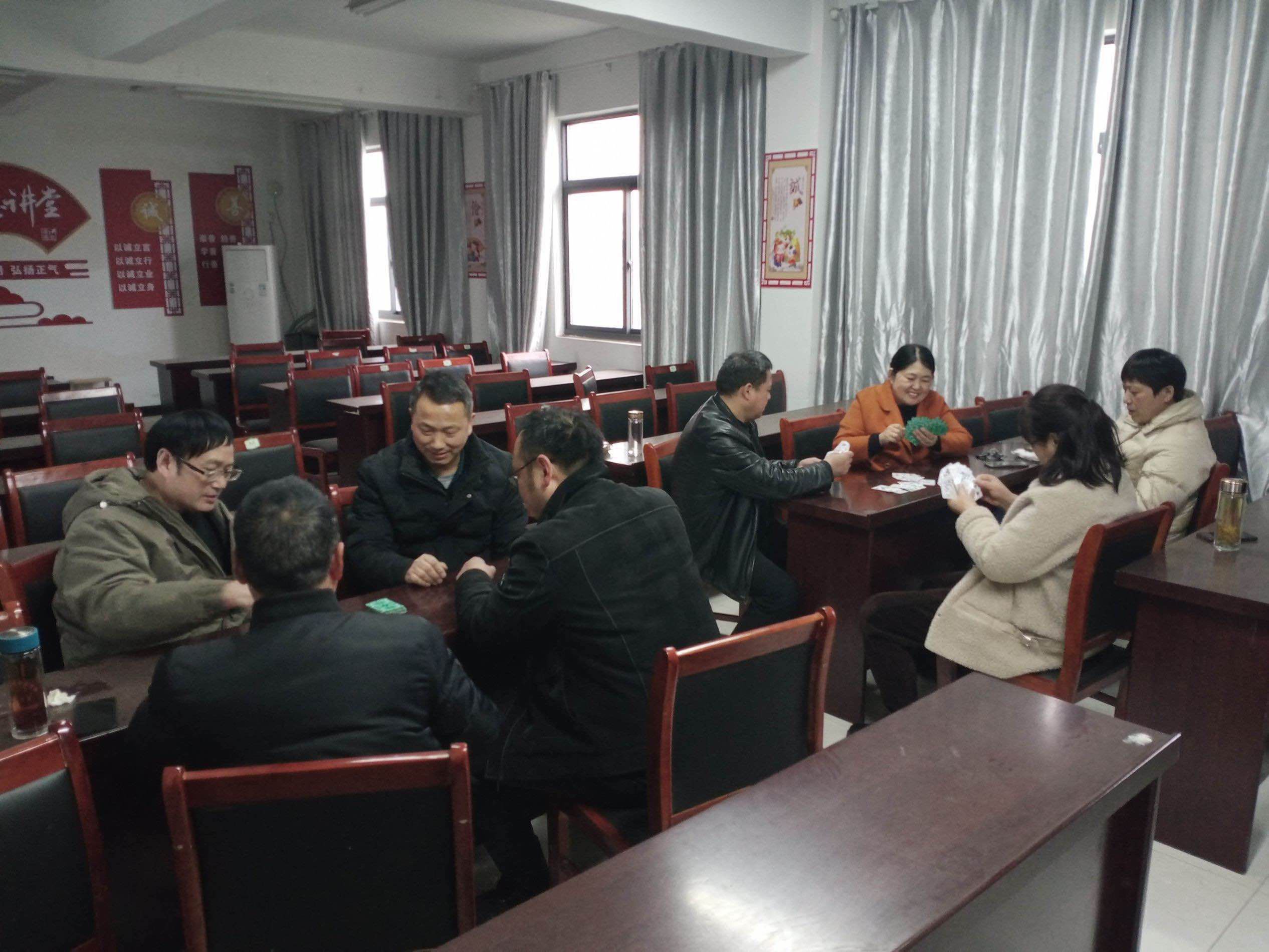 ~ 为活跃校园气氛,丰富教职工业余文化生活,增进教职工之间的沟通交流,缓解工作压力,定远县七里塘学校工会于3月20日至23日在三楼会议室举办了掼蛋比赛。