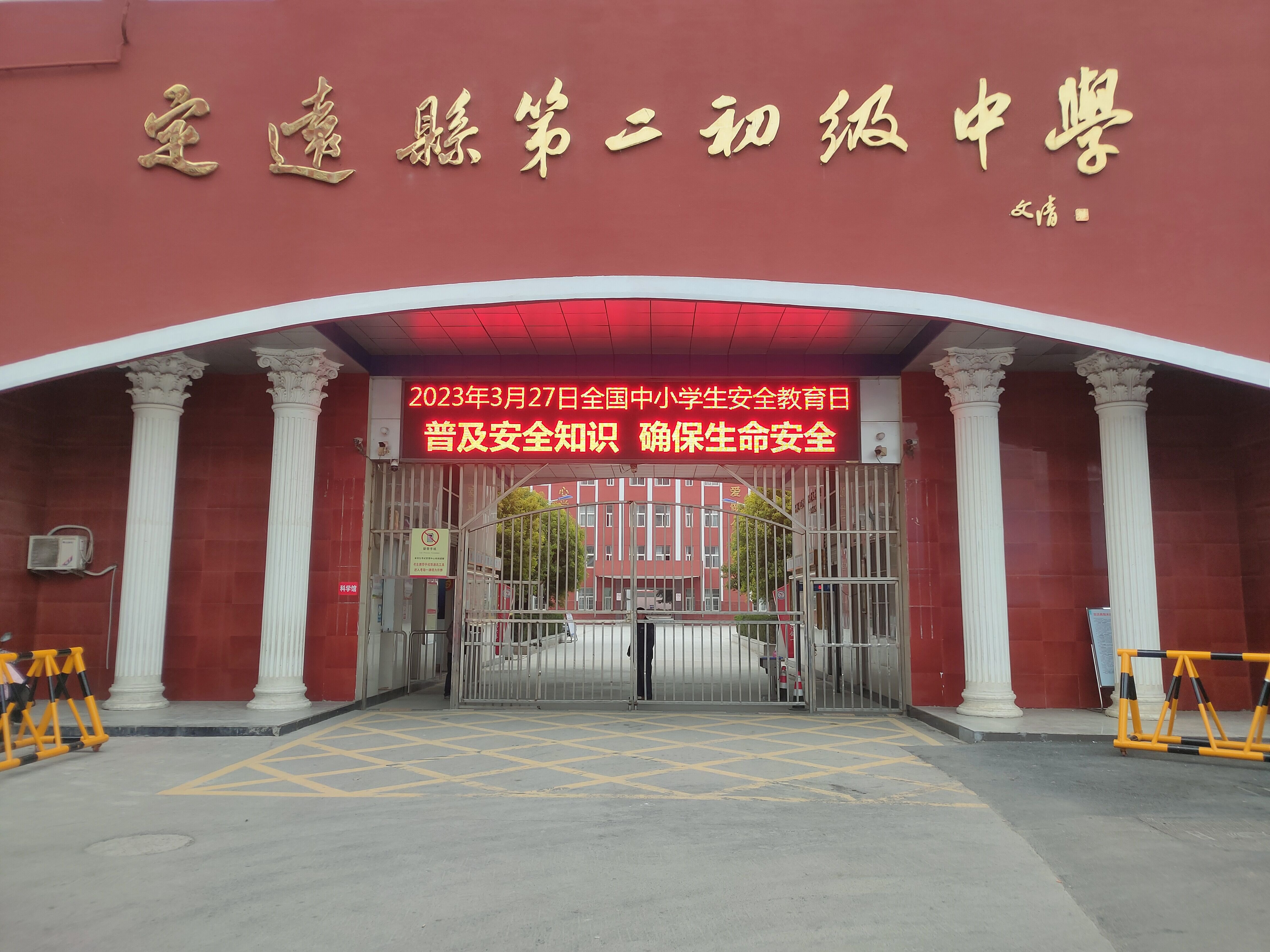 ~ 3月27日是第28个全国中小学生安全教育日,今年的主题是:“普及安全知识,确保生命安全。”定远县第二初级中学通过校园电子屏、国旗下讲话、主题班会、消防安全知识家庭作业等形式,开展了丰富多彩的宣传教育活动。
