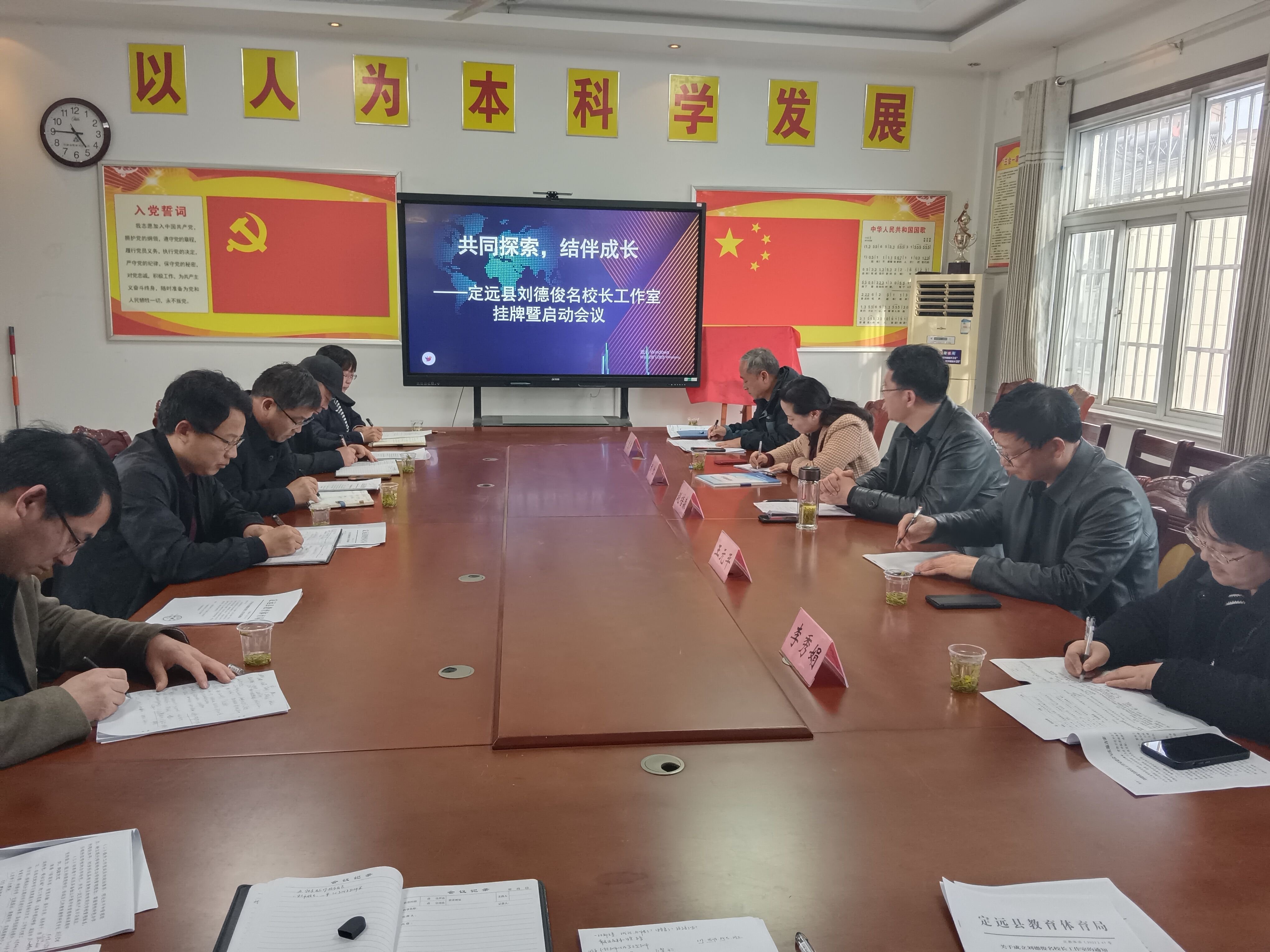 众行方可致远,聚力定能笃行。3月28日,定远县刘德俊名校长工作室挂牌暨启动会议在民族小学举行,定远县教体局副局长赵培森、基教股股长王元平、教研室主任武红、教研室副主任李秀娟出席会议,工作室全体成员参加,会议由民族小学丁红副校长主持。