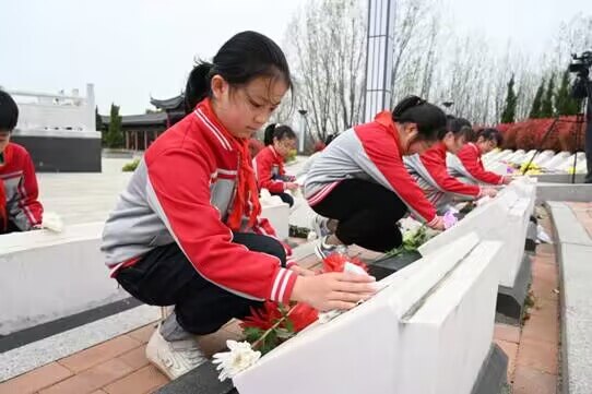 ~ 3月31日上午,曲阳路校区赴藕塘烈士陵园开展清明祭扫活动。烈士陵园内,苍松掩映、翠柏成阴,在集团学校党总支书记、校长陈恩源的带领下,全体师生在巍峨耸立的烈士纪念碑前肃立。伴随着出旗曲,全体队员齐唱队歌。烈士纪念碑前,少先队员代表发言:是无数革命先烈用鲜血乃至生命给我们创造了一个和平的生活环境,我们要倍加珍惜来之不易的幸福生活,要好好学习,立志成才、报效祖国,决不辜负先烈们的期望!全体师生向烈士纪念碑鞠躬默哀。大队辅导员发言,她勉励全体少先队员们努力学习、刻苦锻炼,做新时代的好少年。祭扫活动中,少先队员们有序瞻仰了革命烈士墓碑,并为墓碑擦去浮尘,献上鲜花。