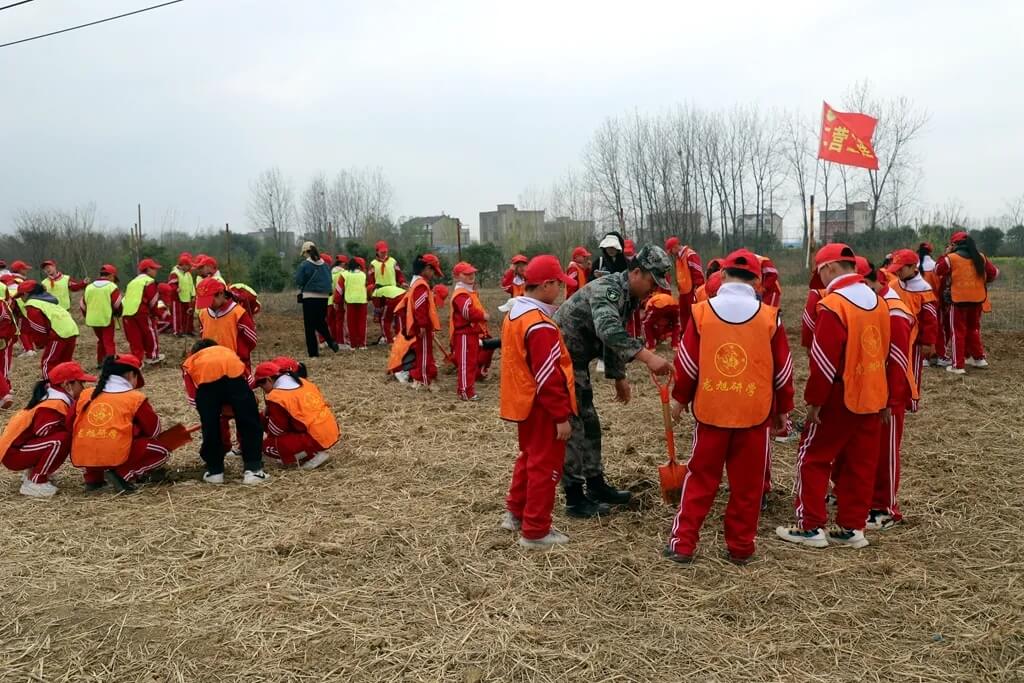 经历是最好的学习,研学是最美的相遇。研学即探究性学习,旅行是让学生走出校园,走进研学旅行基地、走进第二课堂。一大早,该校四年级600余名师生及家长代表迎着朝阳开启了研学之旅。活动中,师生们亲手在基地的劳动实践土地上,亲手种下一棵棵桃树。同学们在教官何老师的指导下挖坑、放下树苗、填土浇水,经过一天的劳动,一行行、一排排树苗就已经在土地里安家落户。