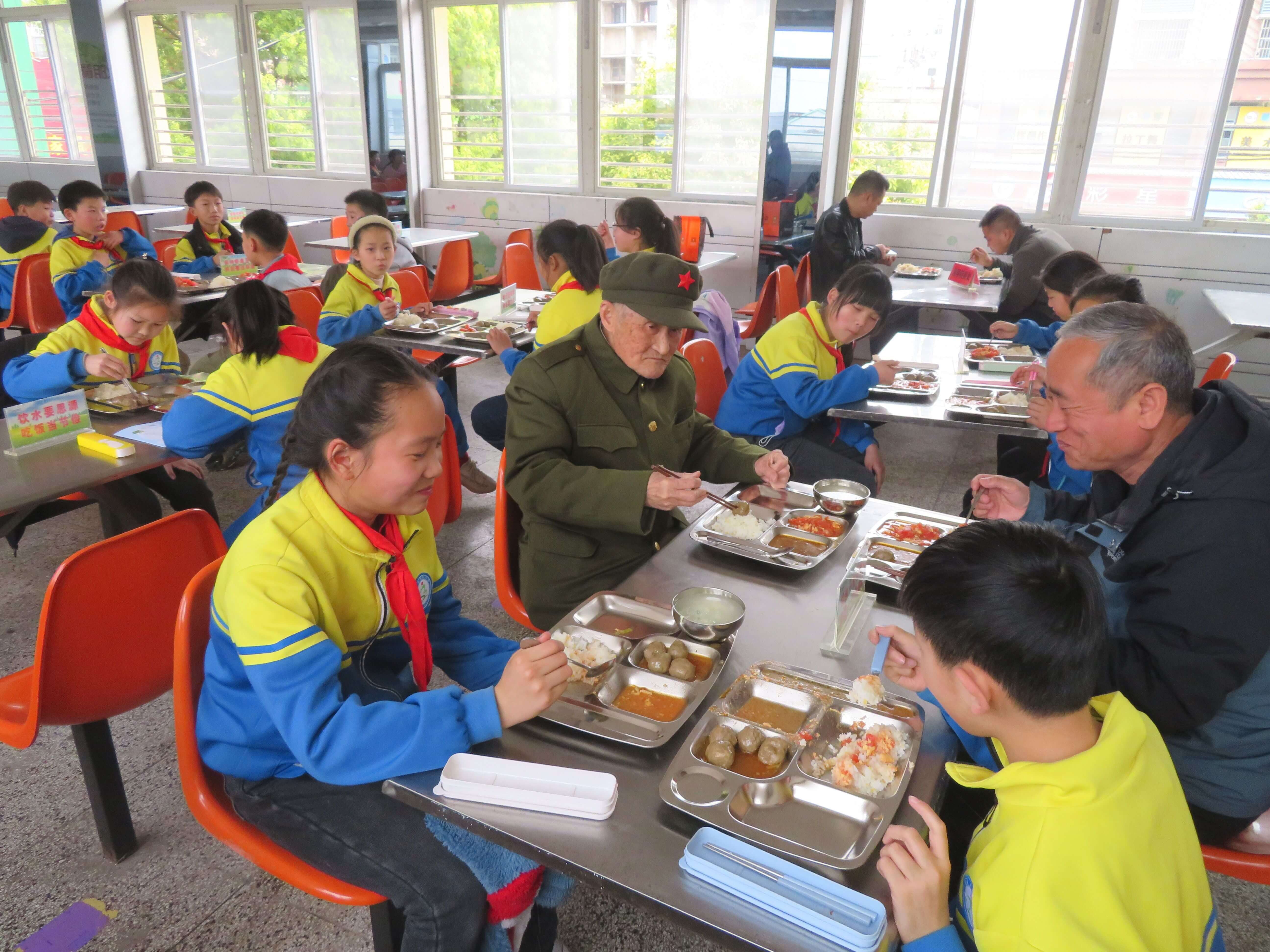 ~ 中午,严明友老人与孩子们在食堂共进午餐。他回忆了战争年代艰苦的生活,带头践行“光盘行动”,保持自力更生、艰苦奋斗的革命本色,给孩子们上了一节生动且具感染力的生活实践课。
