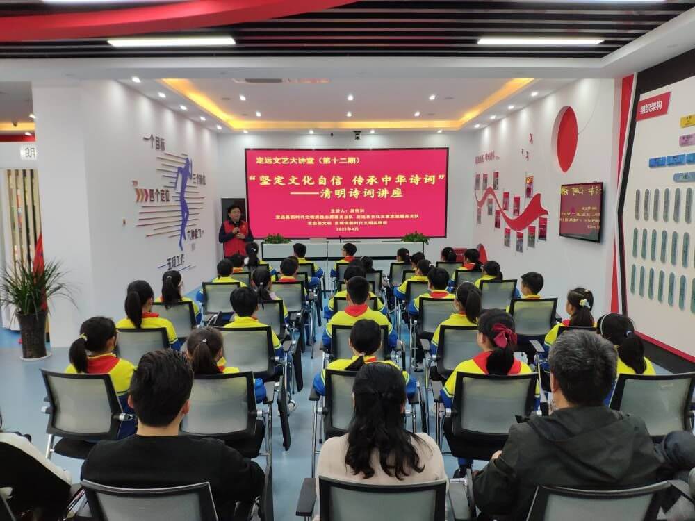 ~ “红色”实践活动。3月31日,学校政教处组织师生代表30多人到定远县新时代文明实践中心进行研学活动。孩子们认真聆听了县楹联古诗词协会主席吴传训老师的讲座,吴老师与孩子们一起品读有关清明的古诗词,讲解了古诗词的押韵、平仄、对偶等方面的知识,还与大家进行了有关清明的诗词“飞花令”比赛,孩子们在比赛与实践中慢慢领略了“清明”的内涵。(供稿:沈文奇 米雪 审核:刘德俊)