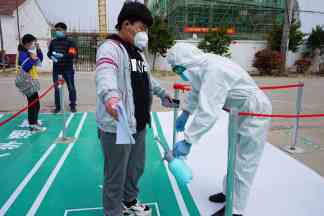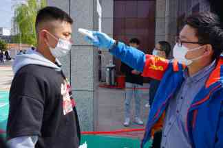中午12点,学校董事长孔祥雷率校领导班子、高三全体班主任老师、学校安保、医护人员、党员志愿者服务组,等待学生的到来。县卫健委熊成刚股长现场指导。 来了!高三学生校门口排队,前后保持1米以上距离,由校防疫工作人员对行李物品进行消毒,紧接着学生分班级进入安全检测通道,交表、扫码、测量体、酒精纸巾消毒、更换口罩,再由校引导员引导至宿舍,全程井然有序,一气呵成。 育才学校在县教体局和有关部门指导下,早早制定开学工作方案、反复演练,为本次高三安全复学打下了坚实的基础。
