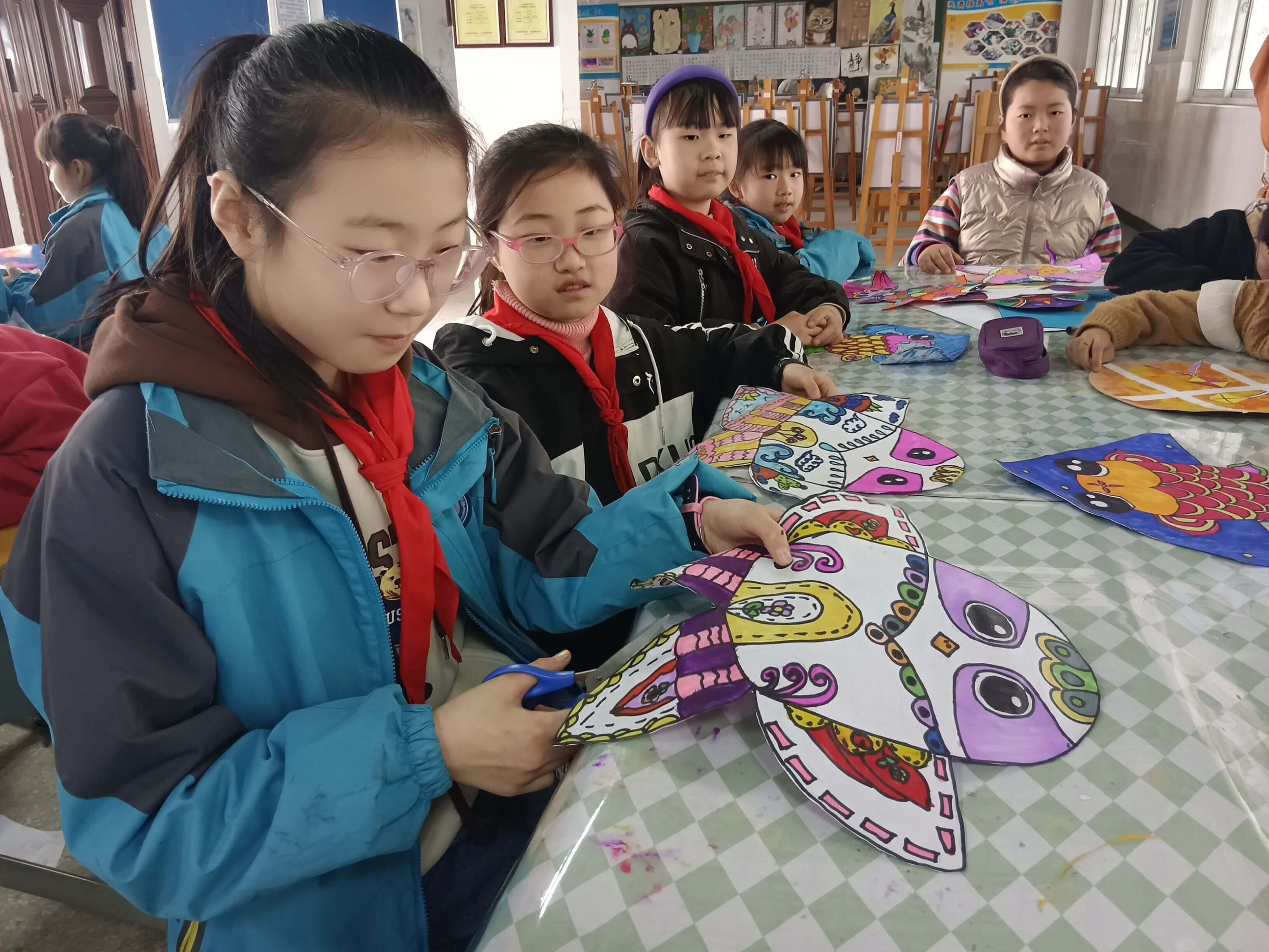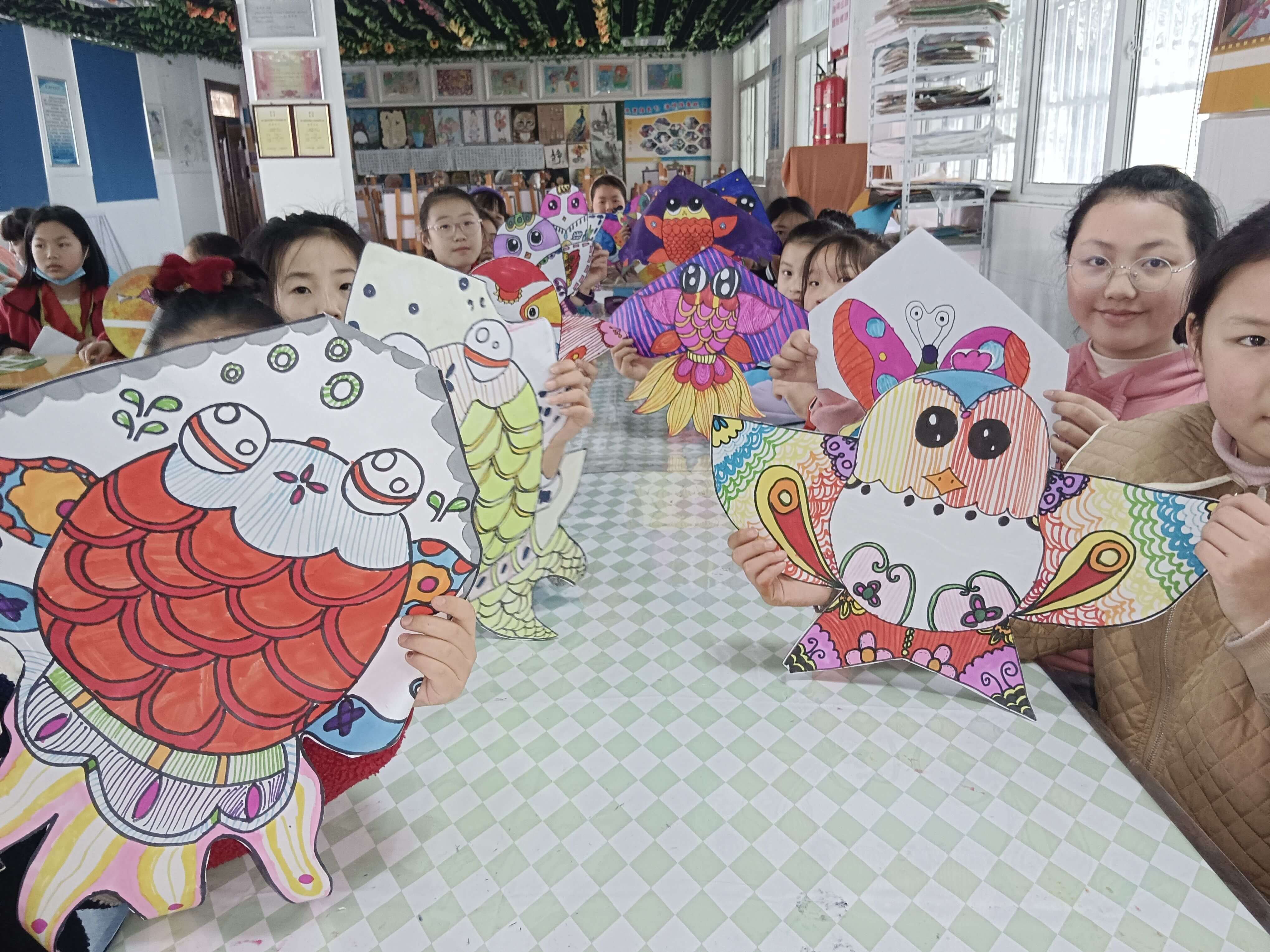 ~ 绘画社团的孩子们,小组合作共同设计风筝图、涂鸦风筝。这考验了孩子们对于色彩搭配,又考验了他们的细心、耐心以及团队合作精神。他们的画笔仿佛是彩色的精灵,笔尖滑过的地方处处彰显着童趣与天真。