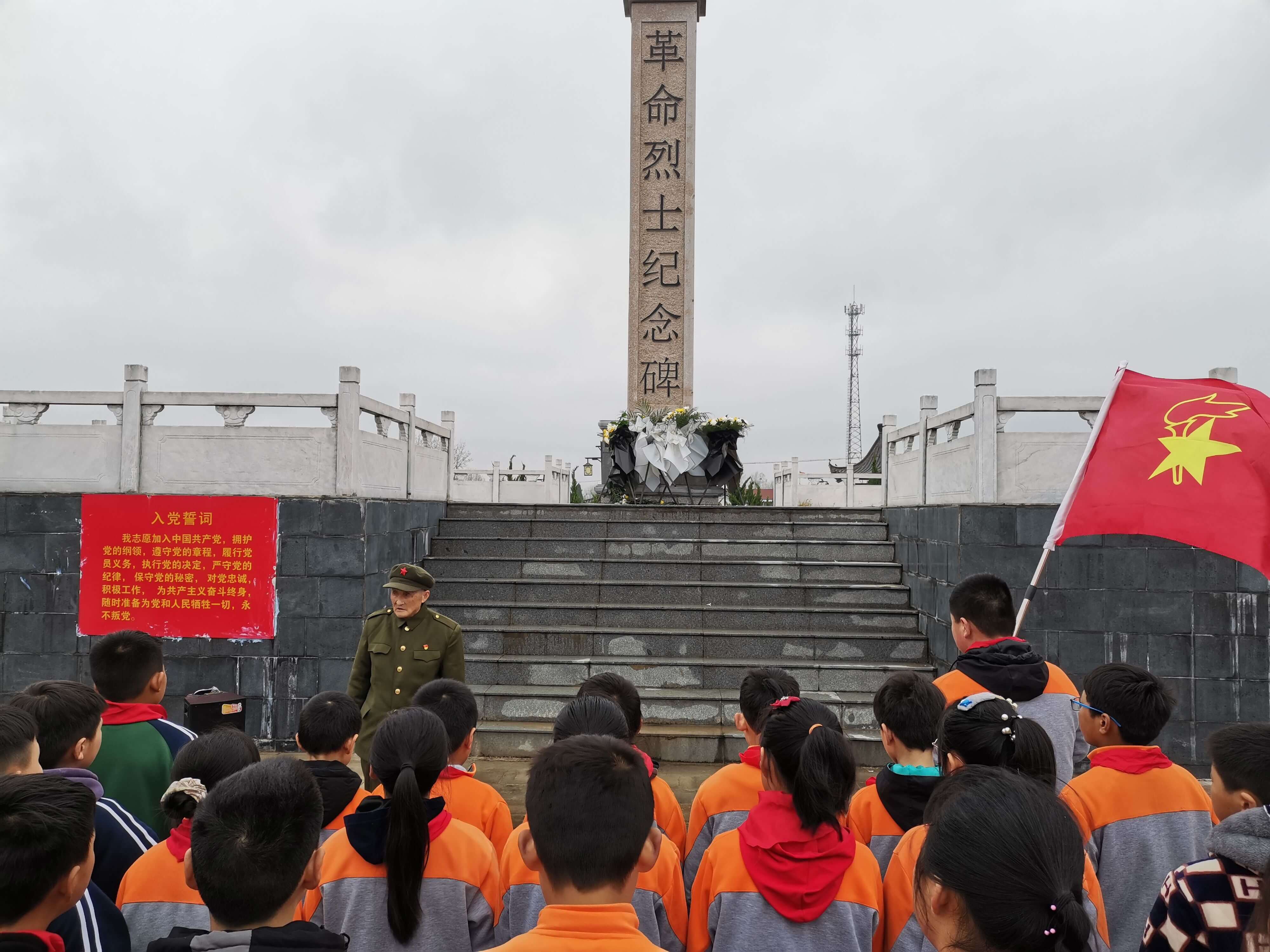 2023年4月4日,在清明节来临之际,定远县朱湾小学党支部成员和部分优秀少先队员代表在新四军老战士、红色园丁严明友同志的带领下至东圩烈士陵园,开展“缅怀革命先烈,传承红色基因”清明祭扫活动。