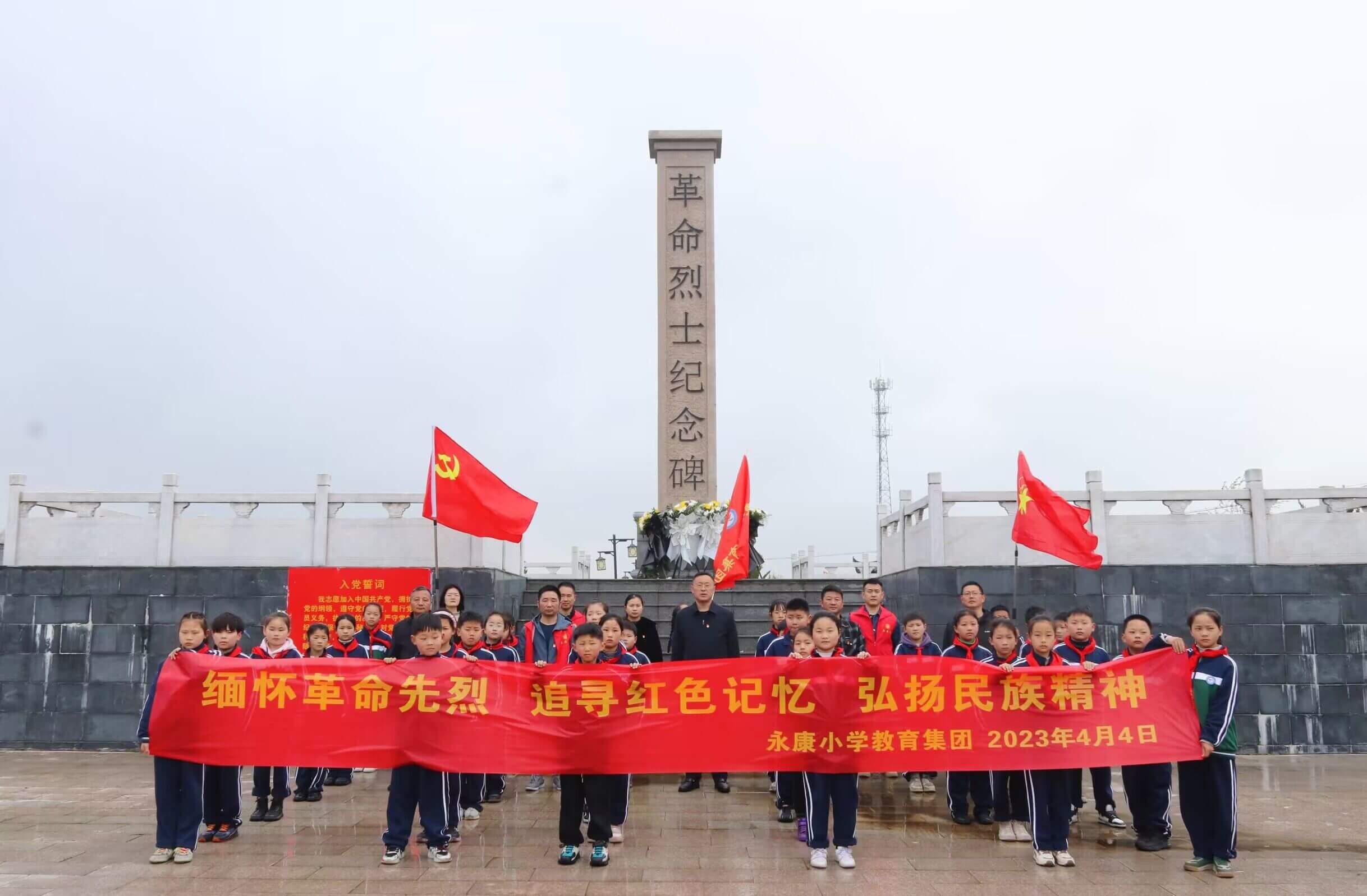 ~ 活动现场,同学们为烈士敬献花篮,鞠躬默哀。永康小学教育集团党支部书记、校长黄海山发言表示:“同学们要学习先烈们不屈不挠的精神,珍惜现在,爱国爱民、守法守纪、勤奋学习,为民族振兴,国家富强肩负起自己的责任!”随后学生代表讲话,全体少先队员们在大队辅导员李月老师的带领下进行呼号,高呼“时刻准备着!”