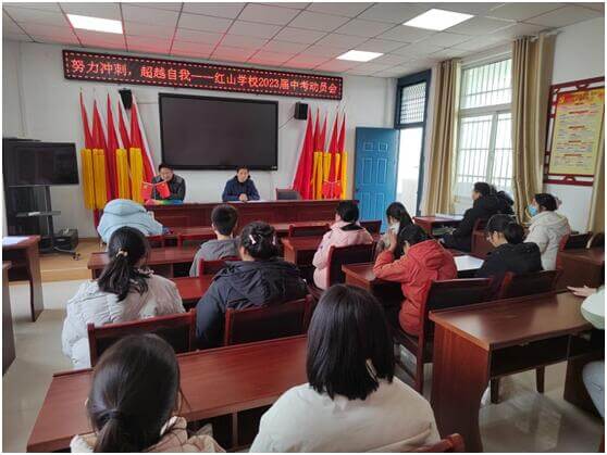 ~ 4月4日上午,定远县红山学校在会议室召开了“努力冲刺,超越自我”中考动员大会。“九年磨剑、七月试锋”,红山学校九年级师生同心,目标同向,信心百倍,迎接中考。