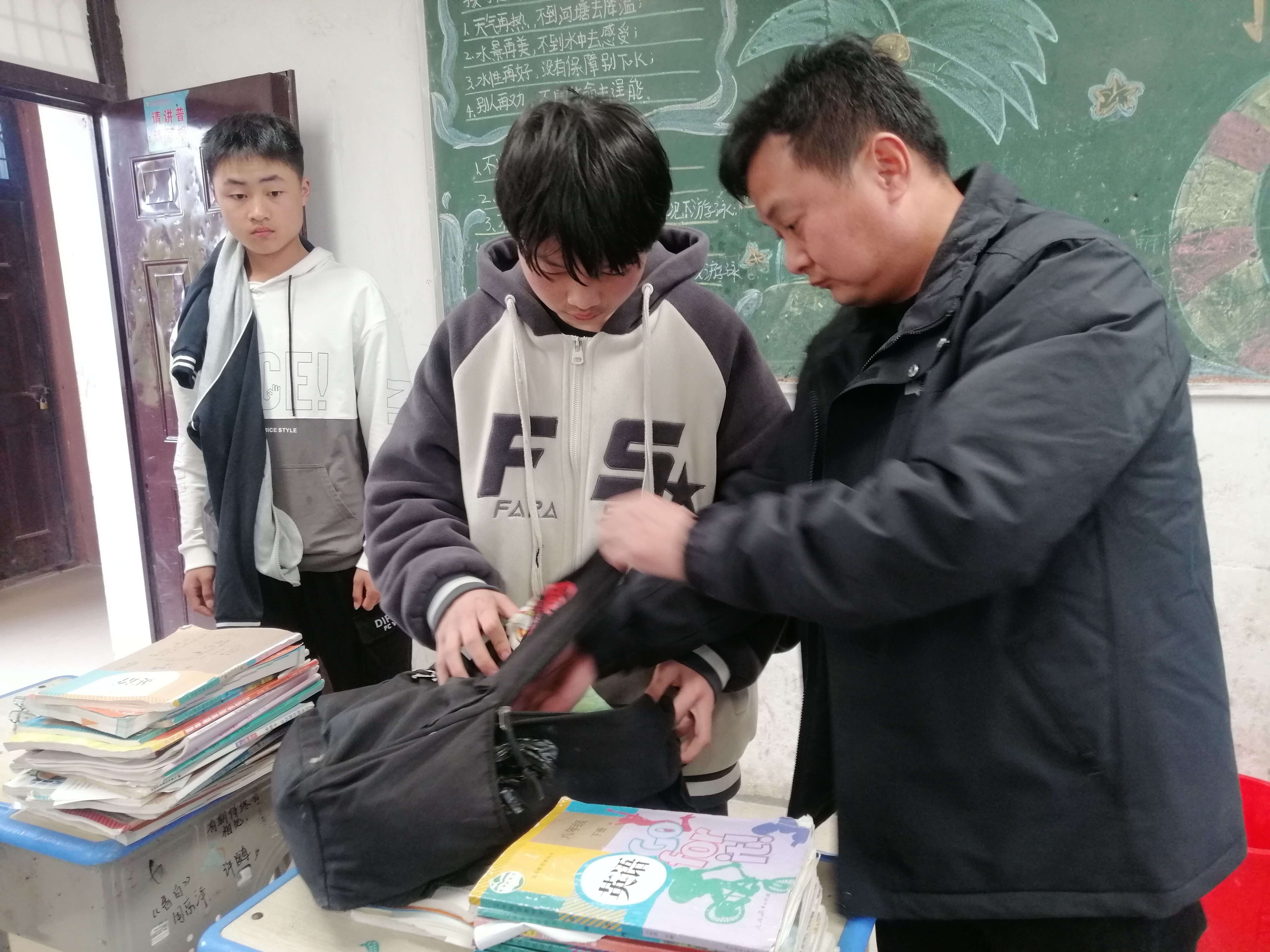 ~ 排查以班级为单位,排查人员协同班主任对学生开展法制安全教育,着重讲述管制刀具的危害性,随后开展地毯式、全覆盖大排查工作。检查过程中,学生们主动、积极配合,排查工作做到无死角、无遗漏,为全体师生安全筑起了一道坚实的防线。