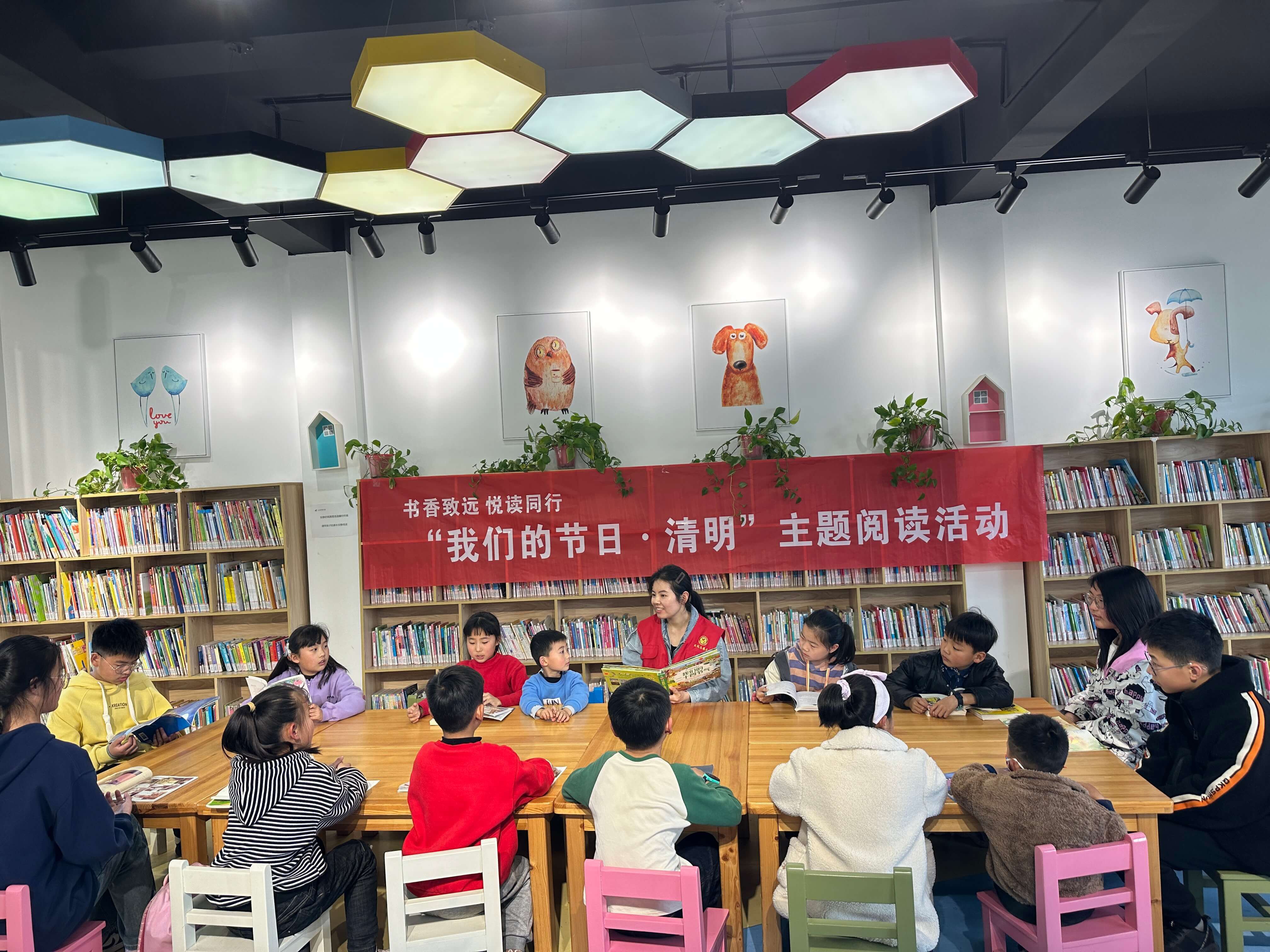 ~ 图书馆工作人员首先给孩子们讲解了清明节的由来以及传统习俗,接下来和同学们分享了《清明》、《采桑子·清明上巳西湖好》等关于清明节的诗歌,在座的孩子们积极参与互动,与老师共同朗读,激发了他们的阅读兴趣。