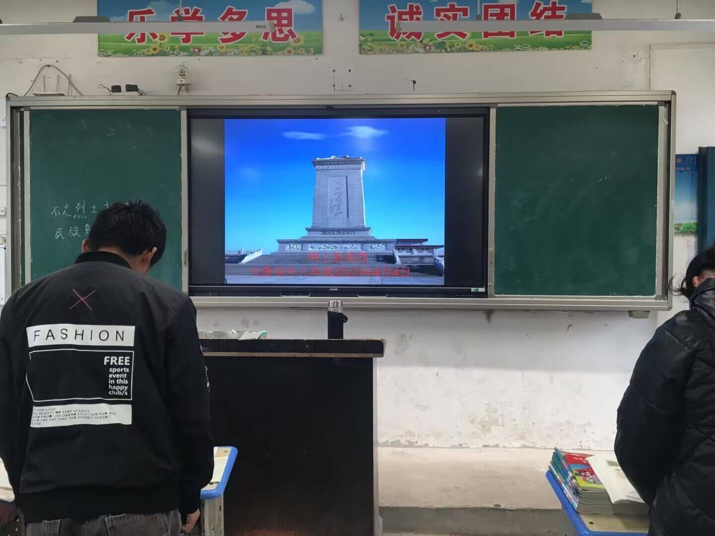~ 班主任老师向同学们介绍了清明节的起源和寄托哀思、缅怀先烈丰功伟绩的活动意义。同学们观看了先烈的英勇事迹的介绍:董存瑞炸碉堡,黄继光堵枪眼,孟起安先生宁死不屈,王伟英勇牺牲……无一不叩动着同学们的内心。一个国家一个民族正是有着这样一位又一位的英烈在危机时刻挺身而出,才有了我们如今的美好生活。同学们通过在网上向先贤先烈鞠躬、敬礼、敬献鲜花,发表感言,缅怀先辈,表达哀思。