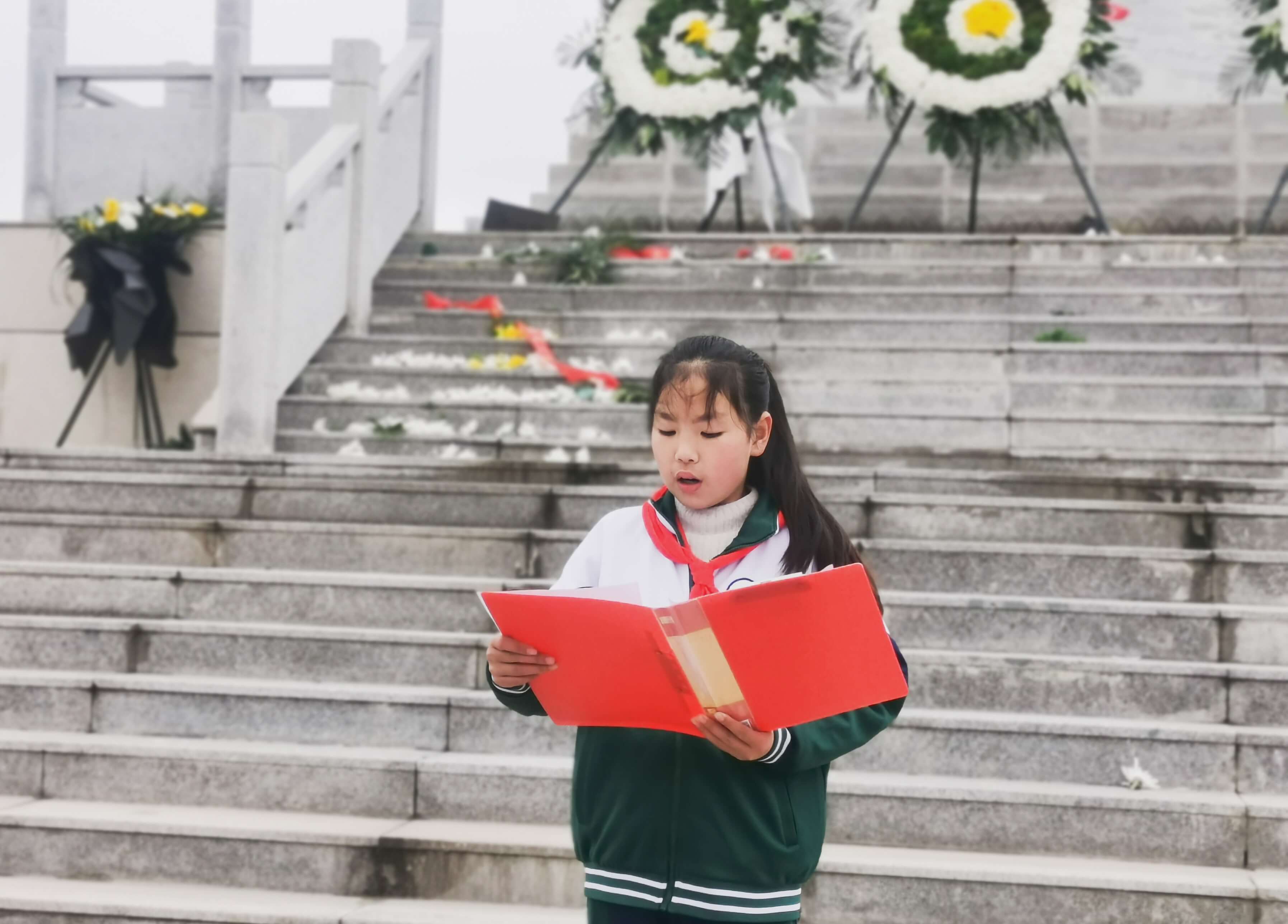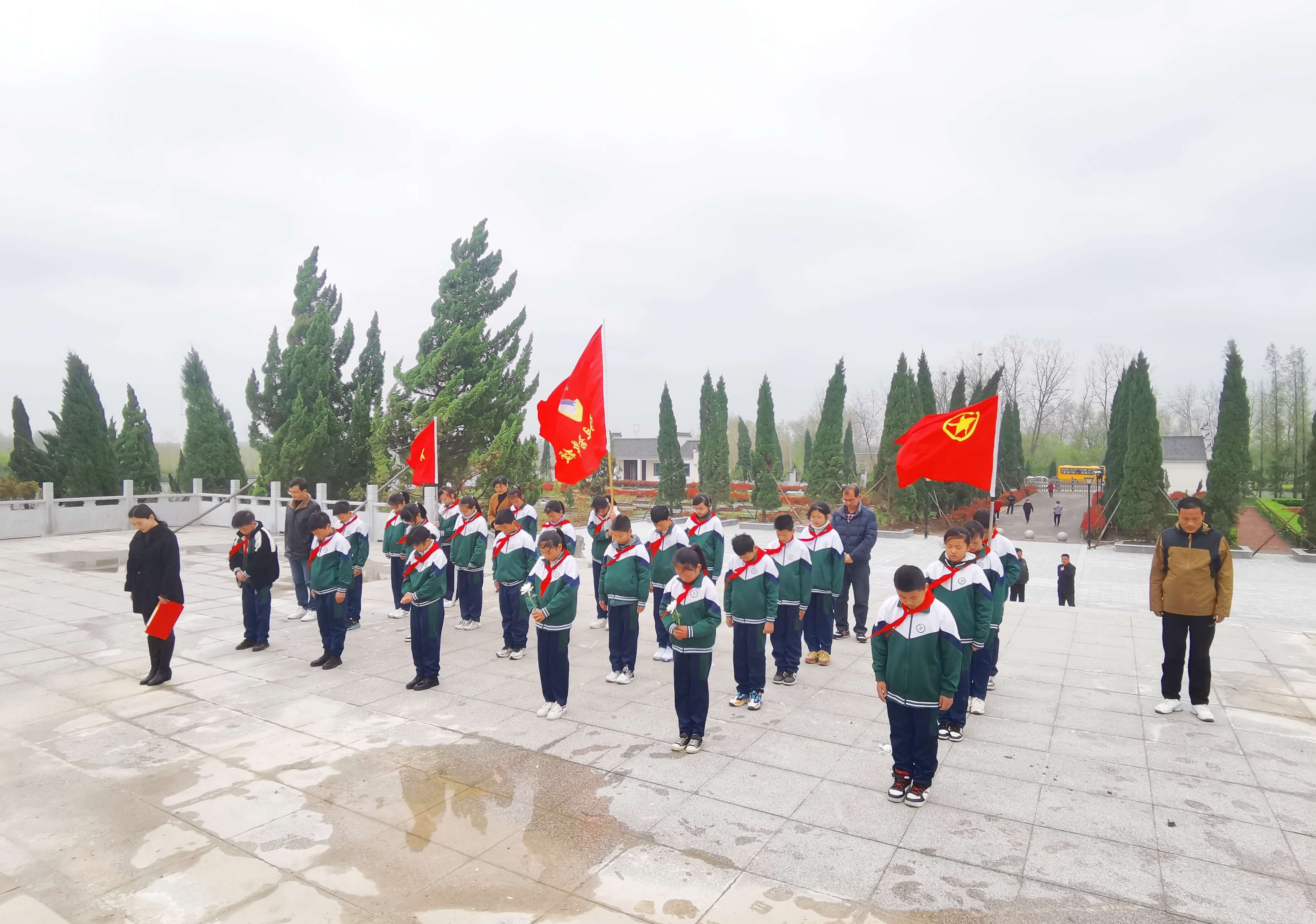 学生在学校统一组织乘车到达王小庙烈士陵园,在无名烈士纪念碑前肃立默哀,随后,师生满怀感恩对陵园进行祭扫、敬献花圈、宣誓,整场活动组织有序。