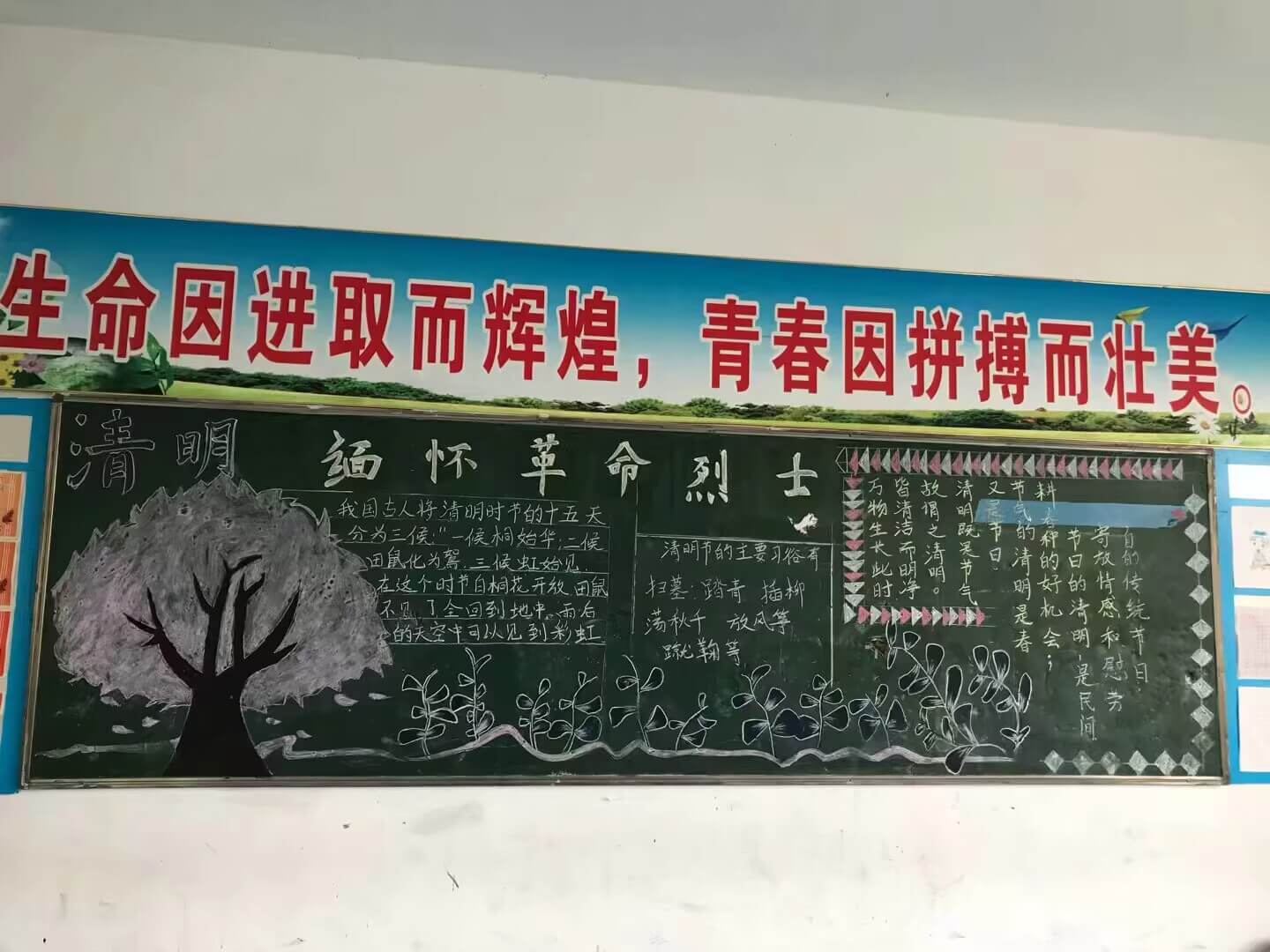 除此之外,学校还利用清明这一传统节日,安排学生观看红色电影、制作清明节黑板报、网上祭英烈等活动项目,旨在通过多种形式加强学生的爱国主义和感恩教育,体现学校德育先行的办学宗旨,助力孩子德、智、体、美、劳全面发展。(图文: 葛晓雪 初审: 施益军 审核: 吴勇 审签: 张可庭)