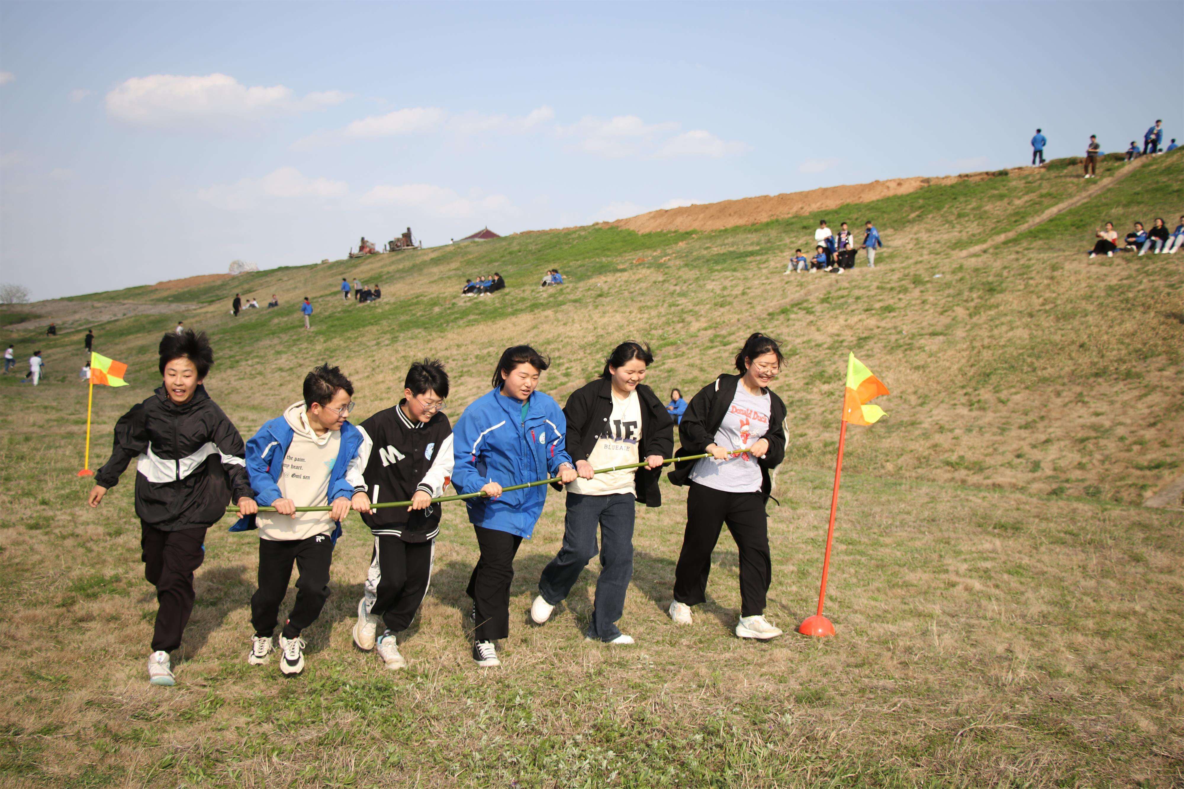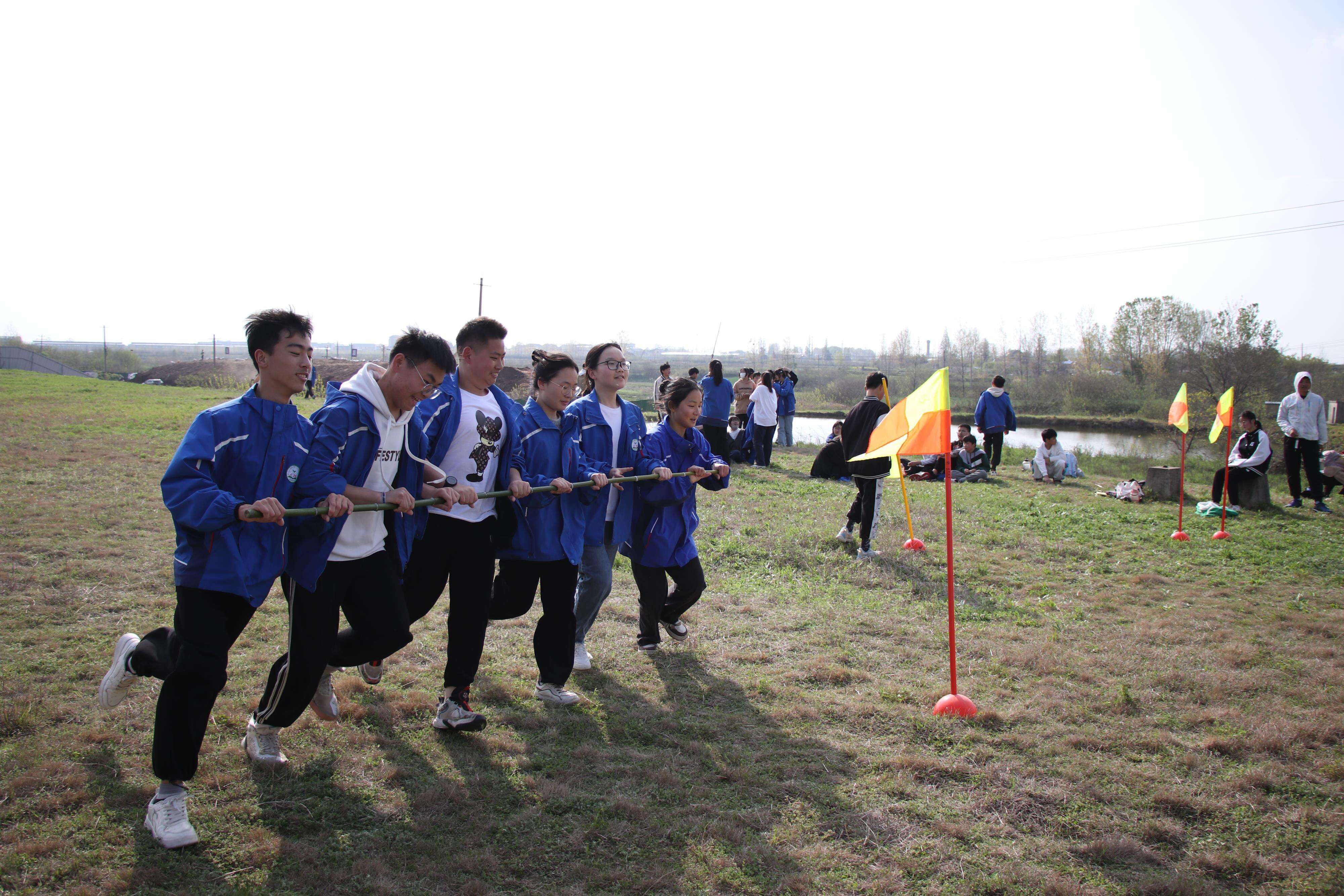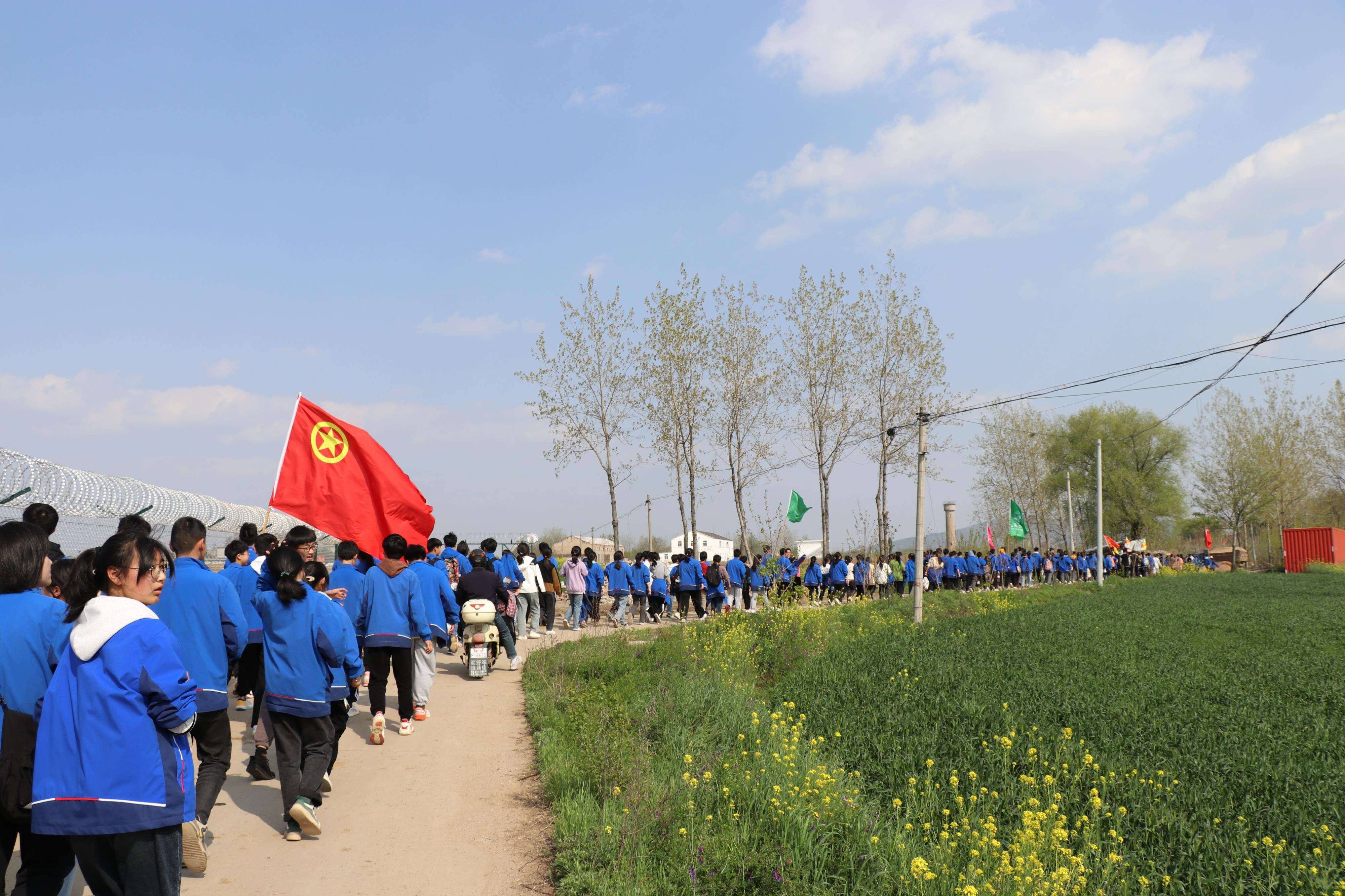 ~ 为了使本次活动安全顺利地进行,校长室对本次活动的各个细节都做了周密的安排,专门成立了领导小组,对教师进行跟班分配,并制定出详细的安全应急预案。下午2:30,学校青春广场前彩旗飘展,参加此次春游踏青的师生个个满面春风、精神抖擞。同学们在班主任的带领下,高举鲜艳的国旗、校旗和团旗,排着整齐的队伍,走出校门,迎着和煦的春风,踏上了征程。活动中,同学们一路欣喜一路歌,在大自然的怀抱中观赏植物、做游戏、尽情的玩耍,尽显青春的蓬勃与朝气,成为春天里一道靓丽的风景线。