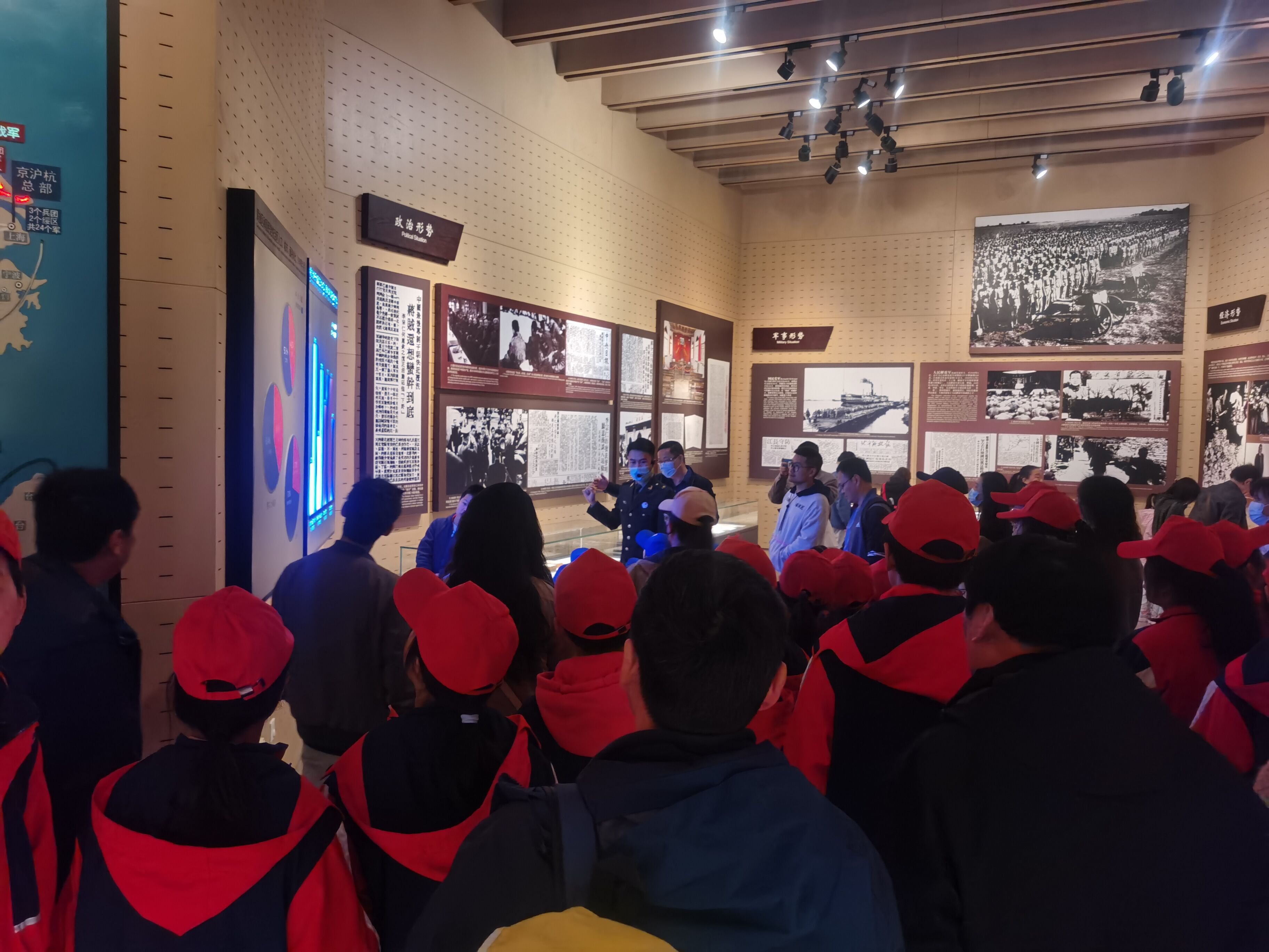 ~ “钟山风雨起苍黄,百万雄师过大江。虎踞龙盘今胜昔,天翻地覆慨而慷。”渡江战役纪念馆两艘战舰般的馆身并驾齐驱,展厅共分为“战前形势”“战役准备”“突破江防”“战役胜利”“人民支前”“英烈业绩”等六大部分。在讲解员的带领下,师生们首先参观了渡江战役纪念馆内基本陈列《百万雄师过大江》,全方位地了解了渡江战役前的国内外形势、渡江战役决策与部署,战役经过等。一张张图片、一道道展板、一件件文物、一段段影像和场景再现,全景式描绘了百万军民奋勇向前的壮阔场景。师生们被一个个红色故事和革命先烈的英雄事迹所深深打动,深刻感受渡江战役的艰险和人民解放军勇渡长江的英雄气魄。
