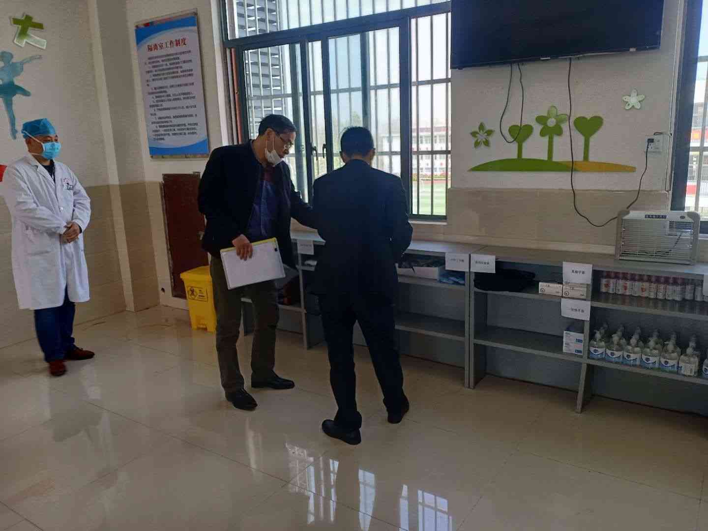 4月8日上午,定远县教体局领导马跃苍主任深入蒋集学校督查疫情防控和九年级开学准备工作,校长王世红同志全程陪同。