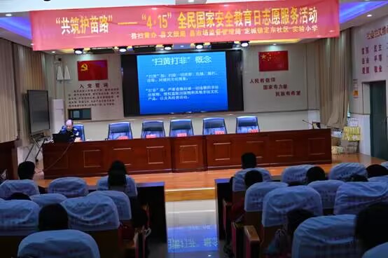 ~ 由定远县扫黄办、县文旅局、县市场监督管理局、定城镇定东社区、实验小学教育集团联合主办的“共筑护苗路”——“4·15”全民国家安全教育日志愿服务活动,于4月11日下午在实验小学教育集团曲阳路校区报告厅举行。集团学校党总支书记、校长陈恩源,曲阳路校区负责人、副校长武文松与主办单位领导出席活动,200余名少先队员代表参加活动,活动由武文松主持。