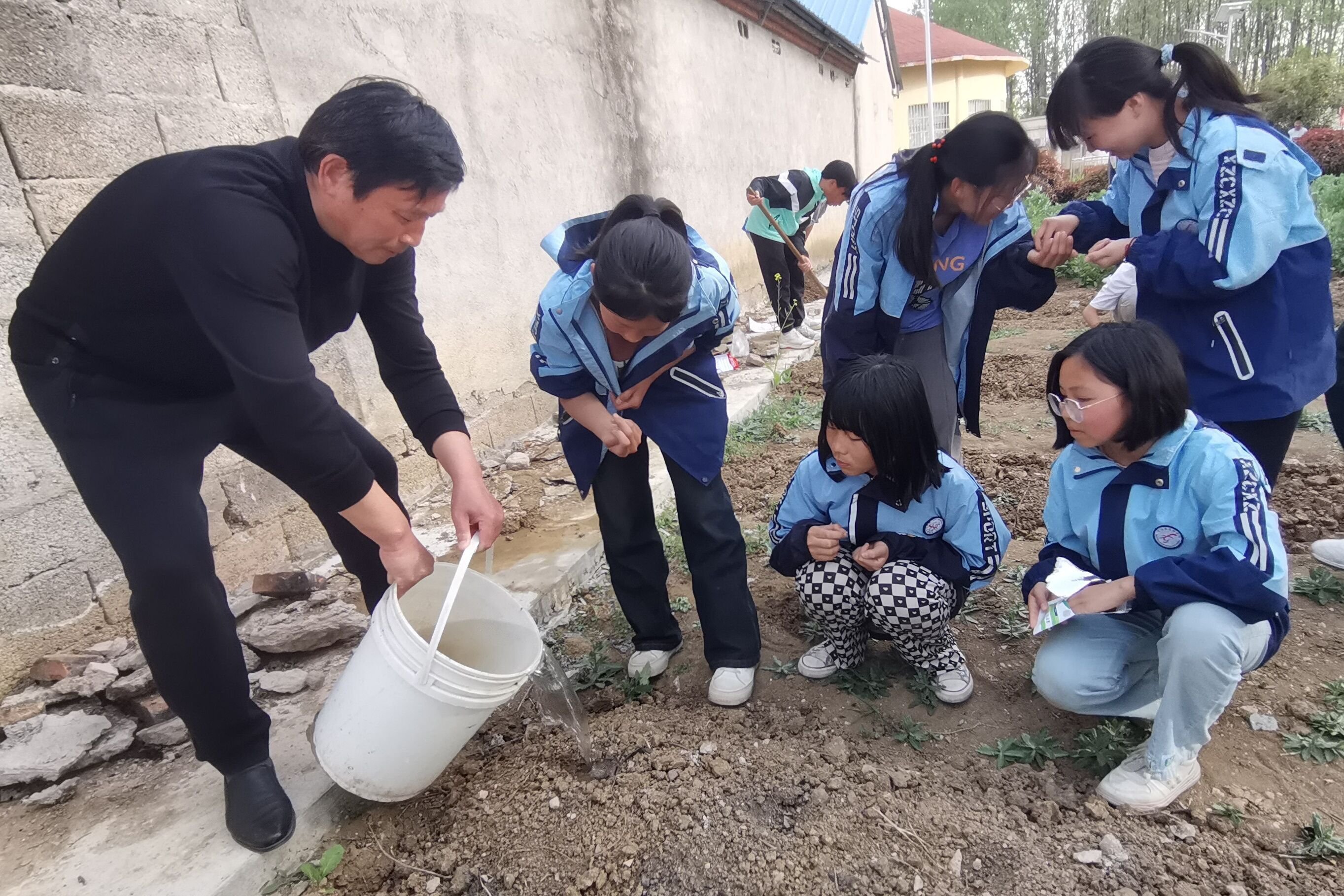 ~ 该校依托土地资源丰富优势,利用校内闲置土地,自筹资金约4万元打造出1000多平方米的劳动实践基地,划分责任地,统一制作班牌。各班老师根据时令带领学生在基地种上各种蔬菜、水果和花卉,学生们通过“种—赏—收—品”感受劳动乐趣,减轻学习压力,培养劳动技能,培育乐于劳动的美德。