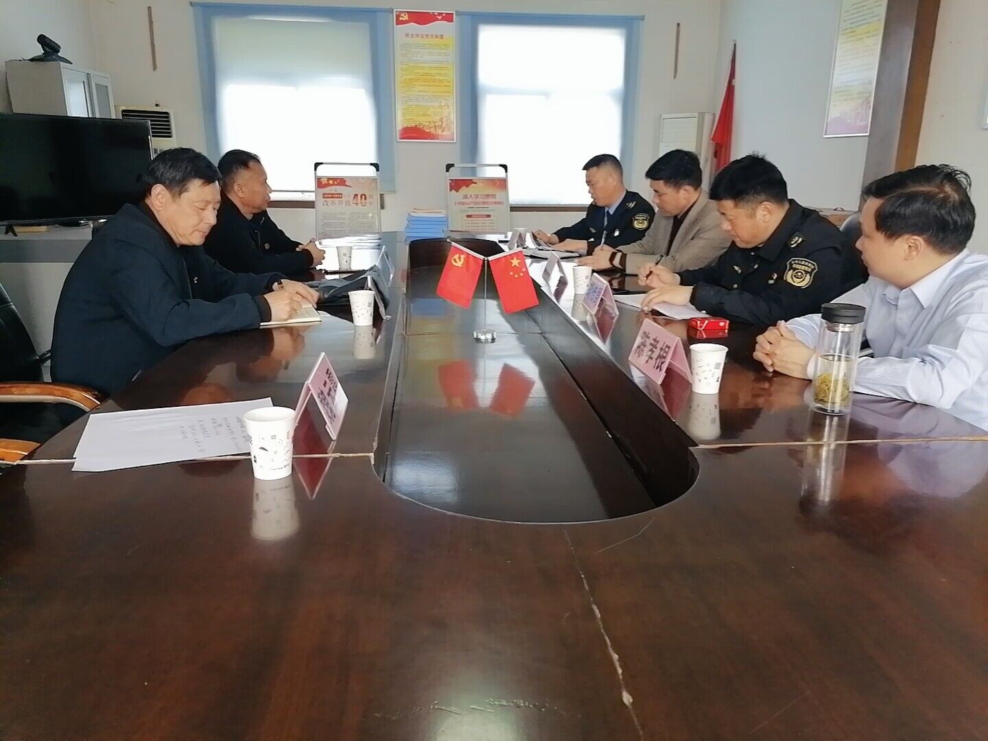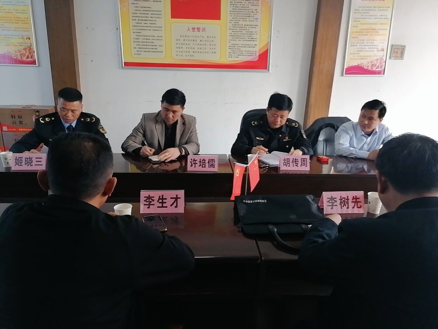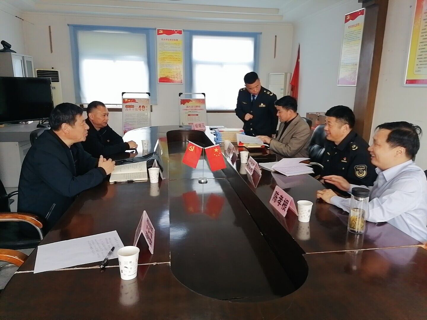 ~ 严桥学校党支部李树先书记,副校长李生才,定远曲阳市场监督管理所所长胡传周、书记姬晓三,定远皖能环保电力有限公司副书记陈孝根、主任许培儒等于定远县曲阳市场监督管理所会议室召开党建座谈会。会议上,首先胡所长致辞,他表示希望通过此次党支部共建活动,发挥党员引领作用及各自优势,做到组织建设突出,实现互帮互助,共同提升。之后,三方支部负责人介绍了各自支部建设情况、并共同学习交流了开展特色党建活动的工作经验。三方支部纷纷表示,支部共建活动是深入学习贯彻习近平新时代中国特色社会主义思想及全面落实二十大精神的重要举措,希望共建活动进一步实现党建引领、业务互助、优势互补、全面促进三方工作的整体提高,更好地提升支部党建工作水平。