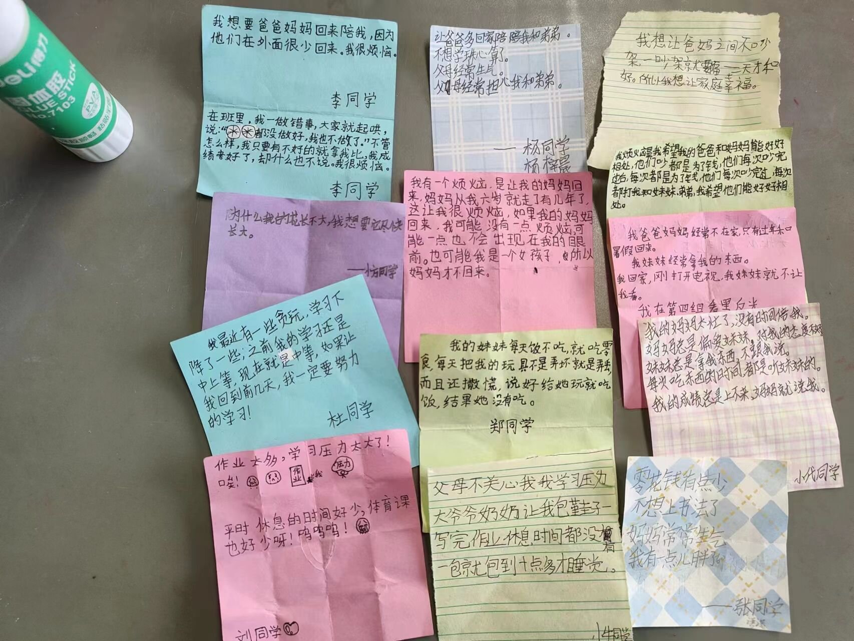 ~ 该校开展了“倡导和谐心态,崇尚健康心理”国旗下讲话活动,杨淑贞老师在讲话中提到“健康是人类的第一财富,财富的一半是心理健康。”心理健康与生理健康同样重要,甚至更重要;各班召开了小学生心理健康教育主题班会,从学生的角度出发,聚焦于学生常见的担忧、消极情绪及异常行为,引导学生用积极的行动调整心态,保持阳光心态;开展了“烦恼盒子”心理健康活动, 别样的活动形式让同学们在一种较为放松的状态下如实写下内心最真实的烦恼,能够适度舒缓身心、解除压力。