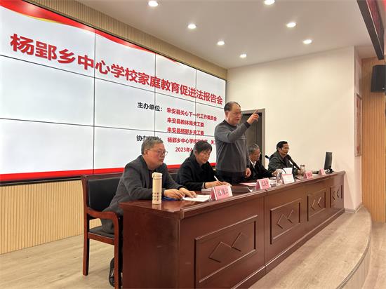 家庭,是人格育成的摇篮,是孩子的第一个课堂。为推进家庭教育工作深入开展,促进未成年人全面健康成长,4月13日下午,来安县关心下一代工作委员会、来安县教体局关工委、杨郢乡关工委联合举办的贯彻落实《家庭教育促进法》报告会在杨郢乡中心学校召开。来安县关心下一代工作委员会主任胡炳成、教体局关工委主任刘汉杰、杨郢乡关工委主任沈庆平、杨郢乡中心学校关工委徐造江老师出席会议。会议由赵海洋校长主持。来自一、三年级学生家长参加会议。